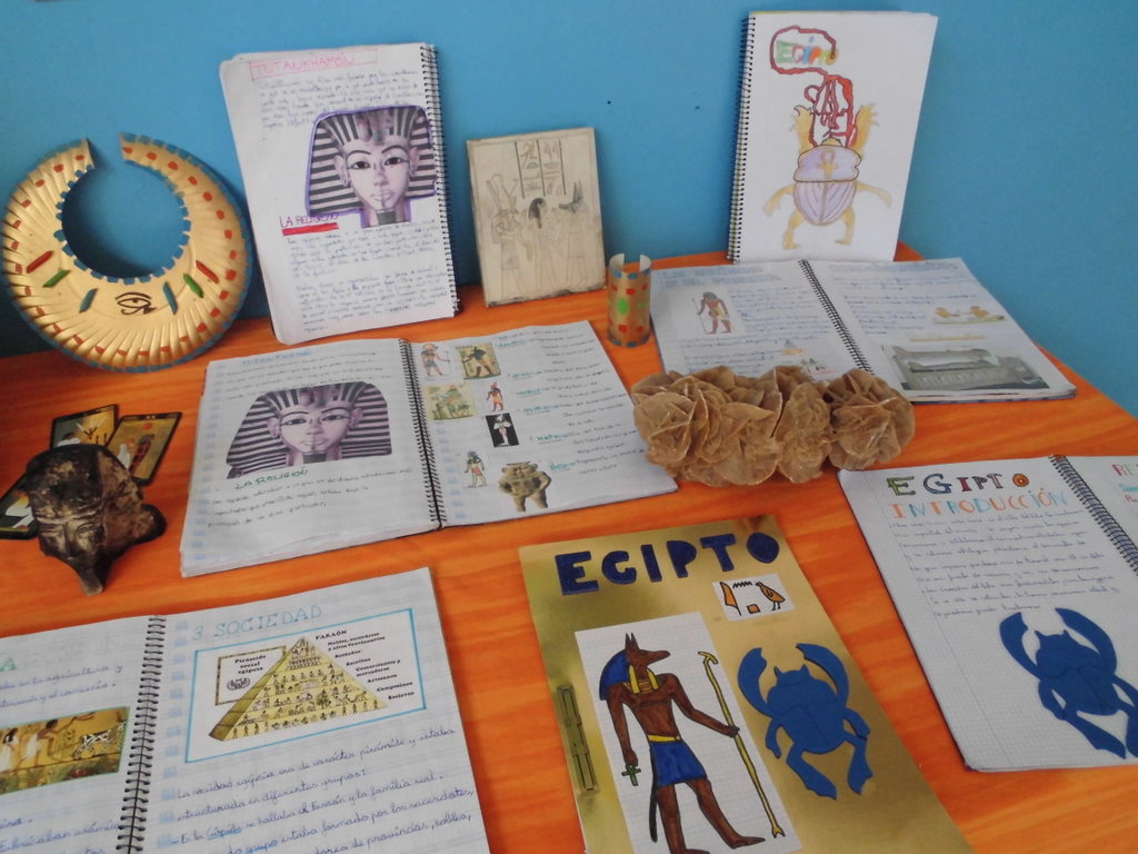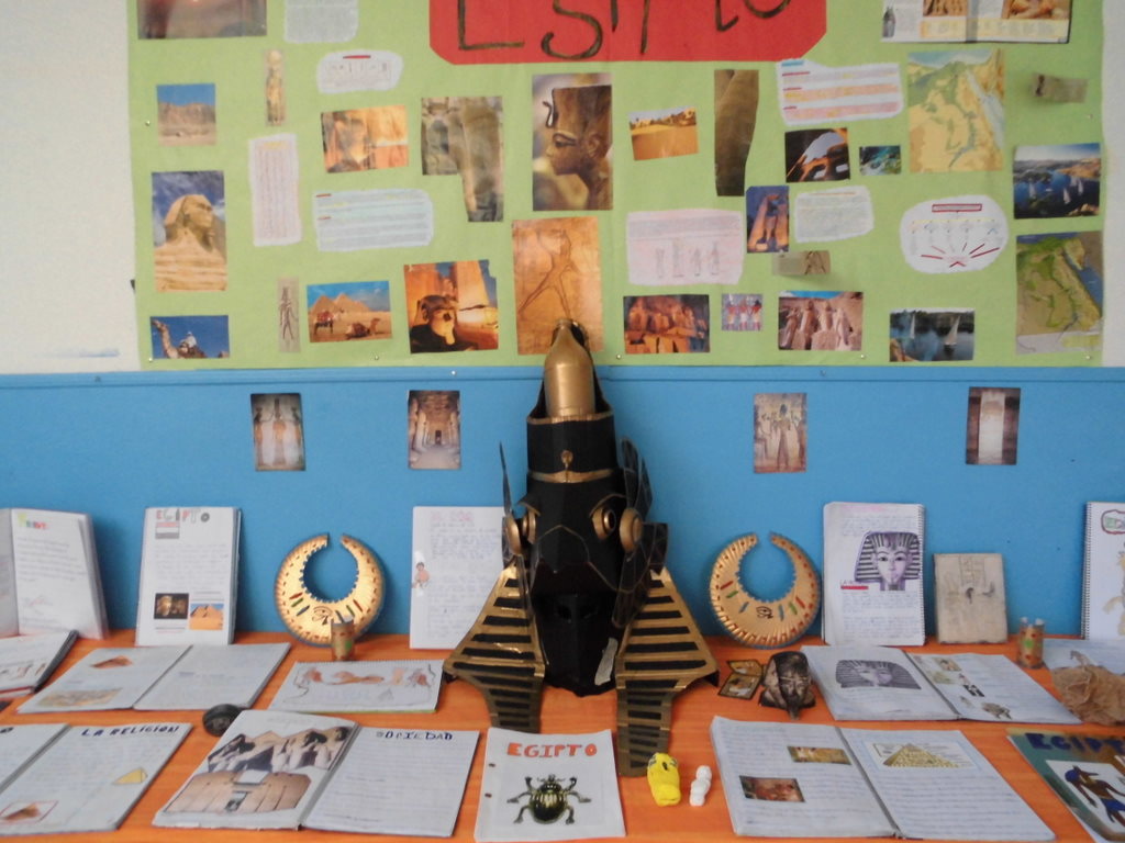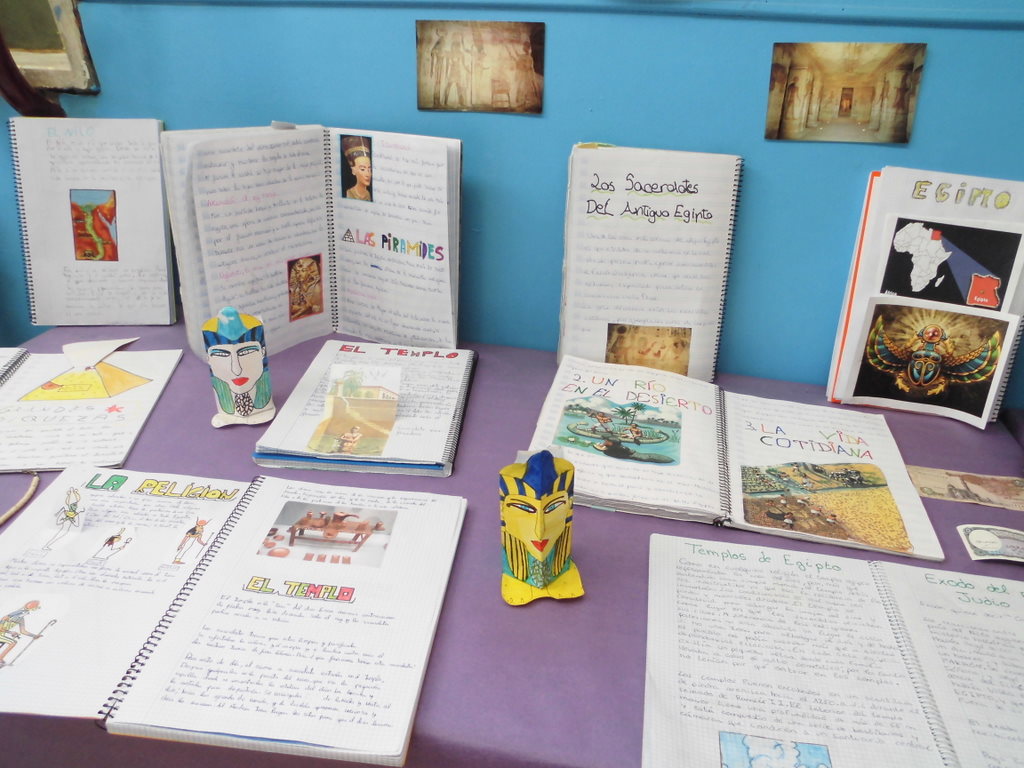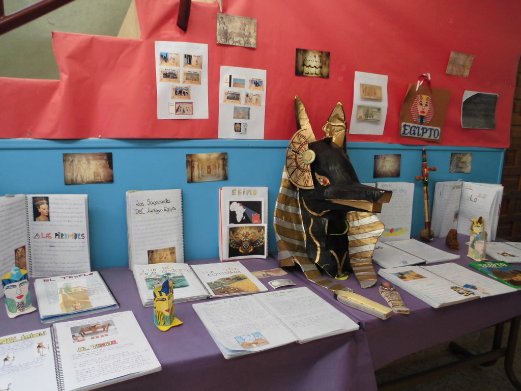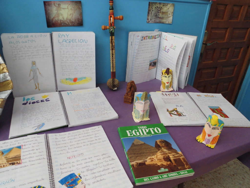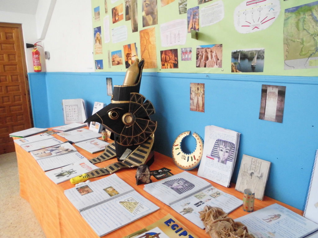 Aquí os dejamos una muestra de los trabajos de investigación que han hecho los chicos y chicas de 5º. Un a mirada a la historia antigua de Egipto nos ha permitido descubrir grandes curiosidades como las moimificaciones, los planos de las pirámides, los grandes tesoros de los faraones, el politeísmo religioso de esta civilización, ……Además de los trabajos, un gran mural y la exposición en clase de los mismos, hemos dejado en el hall del colegio una muestra con objetos, instrumentos, «joyas», maquetas, máscaras,…..para que todos podaís disfrutar del Antigüo Egipto.