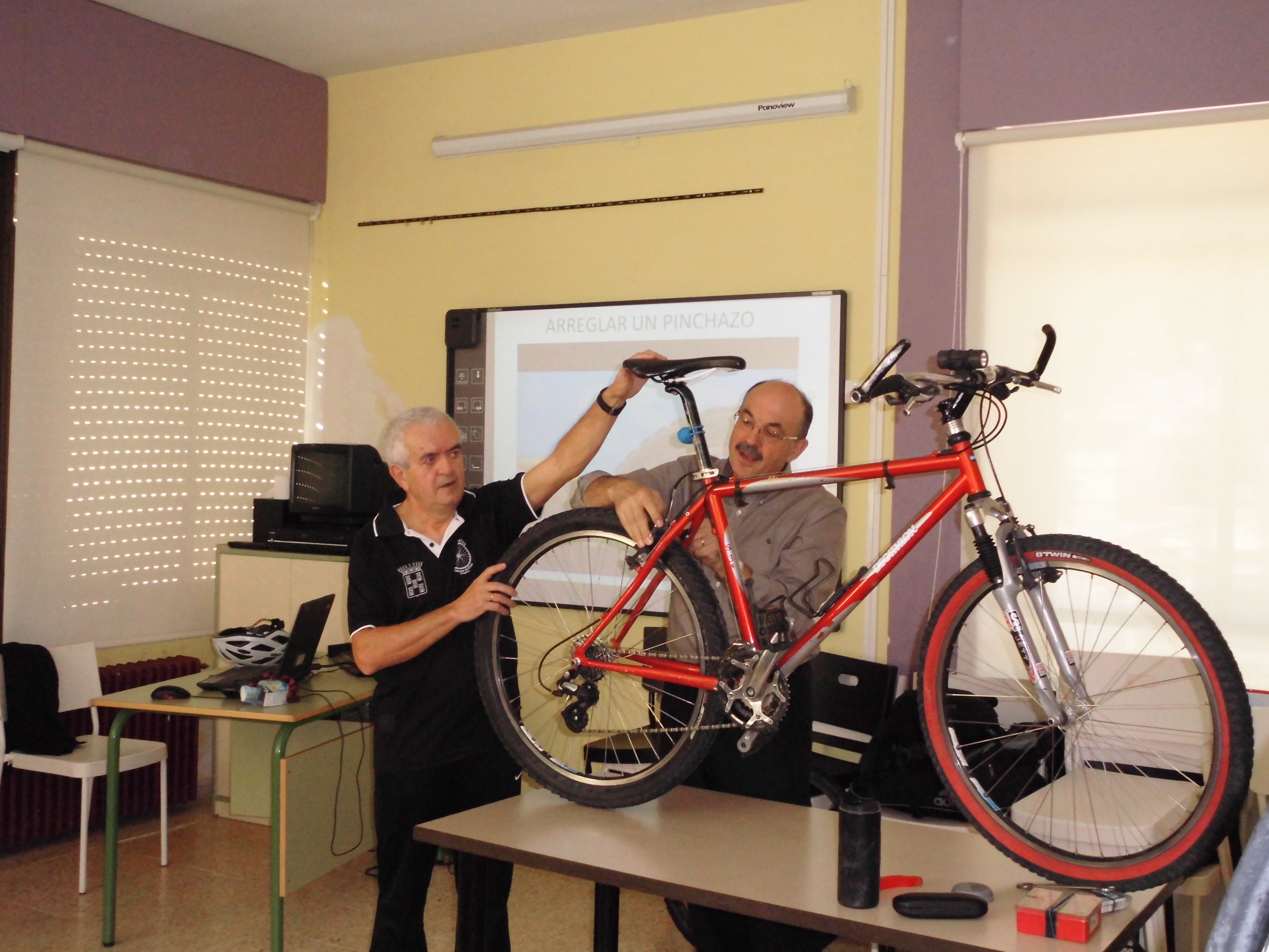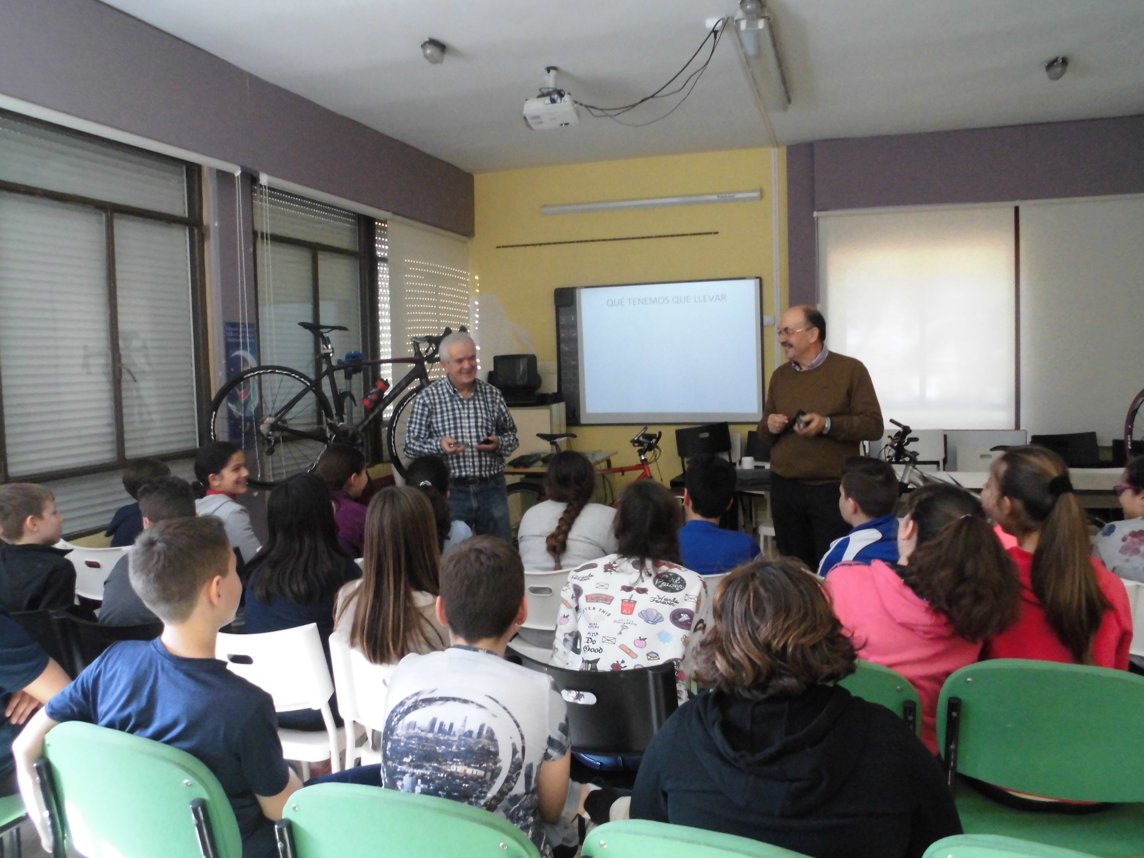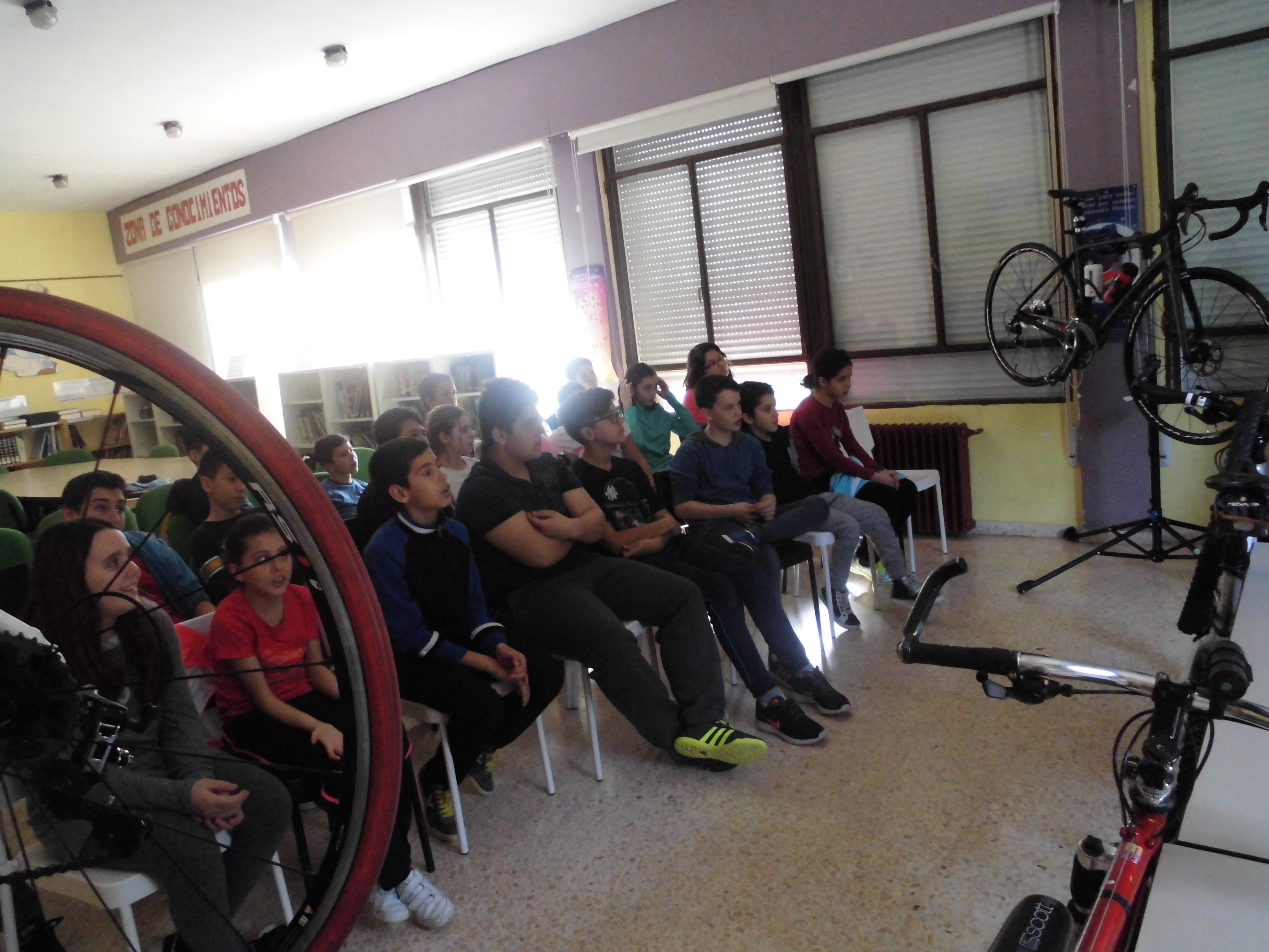 Este año, como en otros anteriores, realizaremos actividades de bici para el mes de mayo. Aprovechando que en Fuentes de Ebro tenemos un club ciclista bien organizado y tienen la disposición de colaborar con nosotros, tanto el alumnado de 5º como el de 6º ha recibido una charla-taller sobre la historia de la bicicleta, sus componentes, manejo de marchas, qué hay que llevar, prevenciones, cambiar un pinchazo…