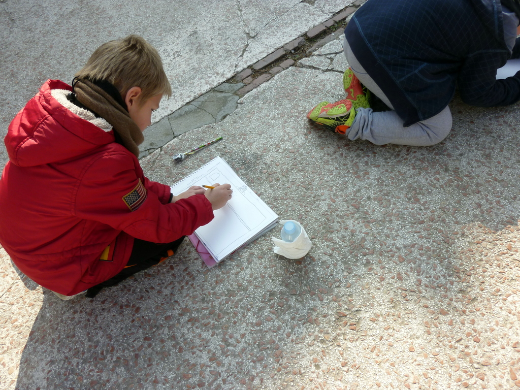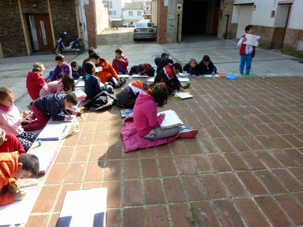 Al salir nos paramos en la escalinata, preparamos nuestros cuadernos y dibujamos al natural la fachada del Ayuntamiento. Hacía muy buena mañana.