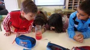 Dióxido de carbono, emulsión, cambios físicos o químicos, volumen, densidad, masa, gases, bomberos y volcanes; son términos o ideas que han salido hoy a través de los experimentos que los alumnos/as de 3º han llevado en el aula.