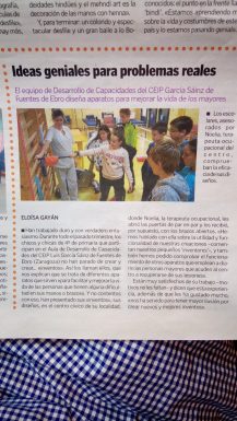 Este pasado miércoles 15 de marzo en el Heraldo de Aragón, salió publicada la noticia de la visita de los alumnos de 4º del Aula de Capacidades que hicieron al centro social, donde presentaron sus inventos.