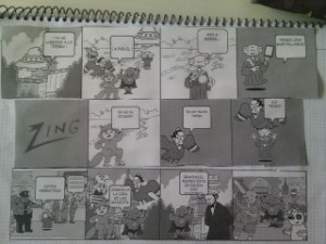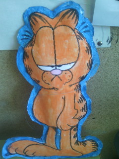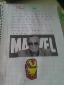 Después tuvimos que hacer una redacción sobre creadores de cómics, ( MARVEL Stan Lee, Francisco Ibáñez, Jim Davis ) y elegimos personajes que habían creado : IRON MAN , Mortadelo y Filemón y Garfield. Los dibujamos en el cuaderno y los representamos en volumen. Unos con arcilla y otros con papel.