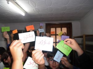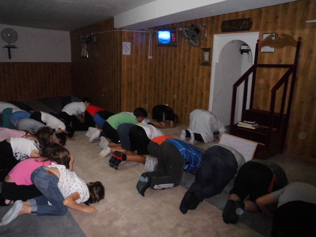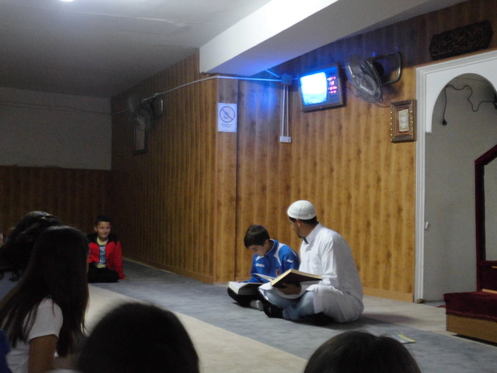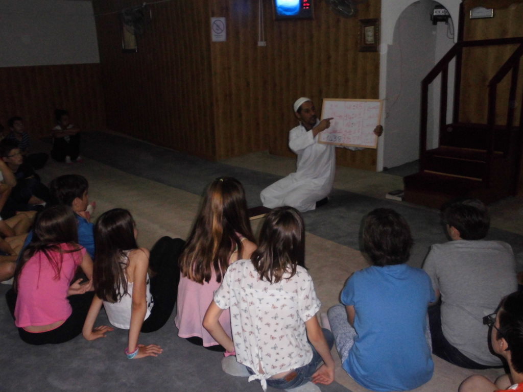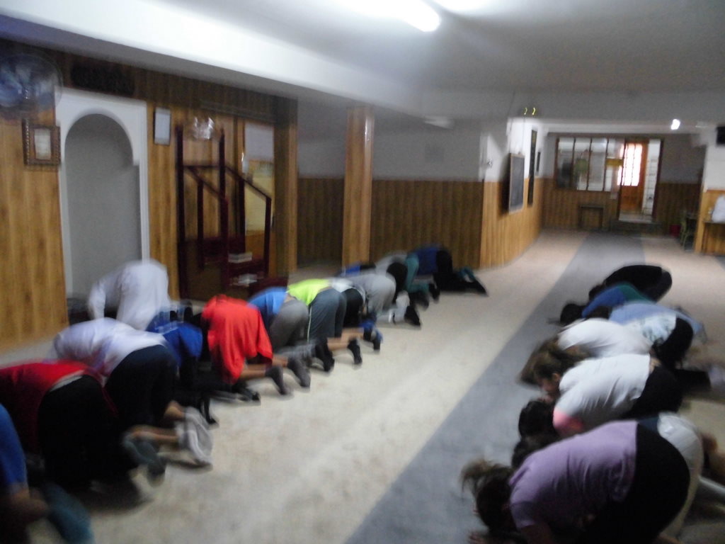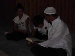 Después nos fuimos a la mezquita, que está en la calle San Antón. Jamal nos enseño varios libros del Corán, contestó a todas nuestras dudas, nos dejo leer en árabe y nos enseñó como se hace el rezo musulmán. También nos regaló unas cartulinas con nuestros nombres en árabe, que nos encantaron.