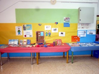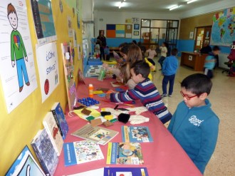 En el hall había una exposición con libros y materiales sobre los TEA, niños de espectro autista.