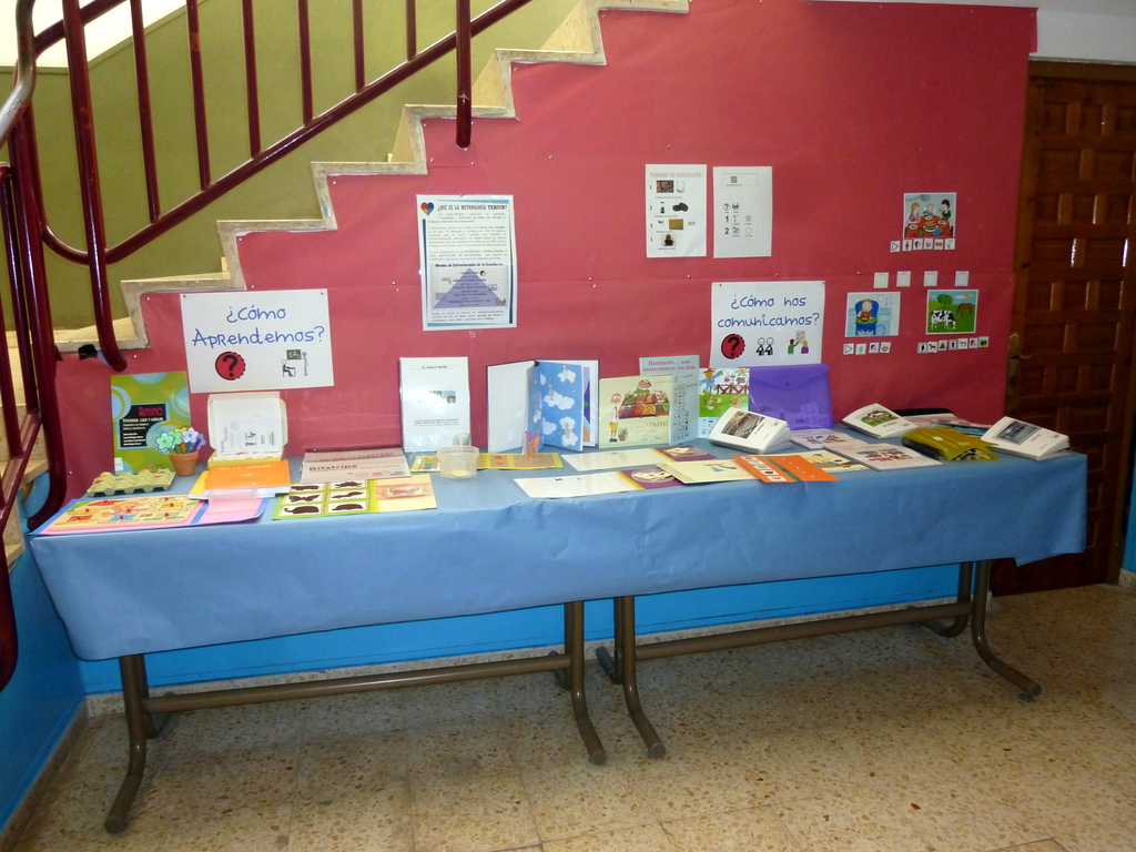 En el hall había una exposición con libros y materiales sobre los TEA, niños de espectro autista.