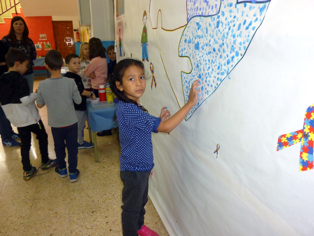 Después pusimos nuestra huella de dedo en el corazón, símbolo de los TEA en la pared.