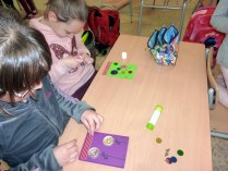 Han sido con material reciclado, capsulas de café y restos de pinturas y decoraciones de otros cursos.