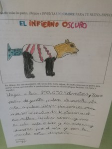Para esta inclusión hemos aprovechado partes del cuerpo de animales que sabiamos de inglés, teníamos que practicar la redacción, teniamos que dibujar un animal raro en un hábitat, y combinar partes del cuerpo de la pagina http://www.wicthzeroozoo.com