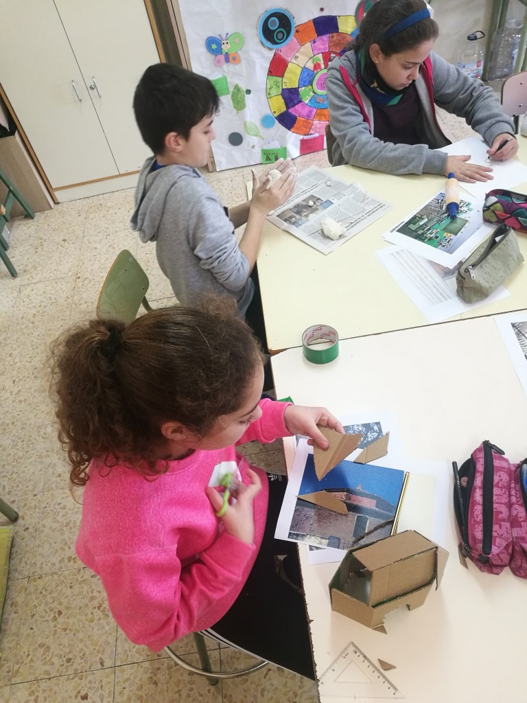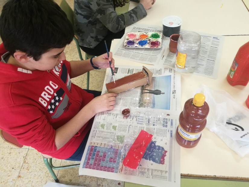 Aquí andan, los compañeros y compañeras de 6º, preparando las manualadades que ayuden a visualizar los cuentos que el próximo día contarán a los alumnos /as de infantil, 1º y 2º de primaria.