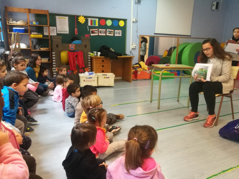 Y por fin llegó el día en el que fuimos a contar nuestros relatos a los chicos y chicas de Infantil.