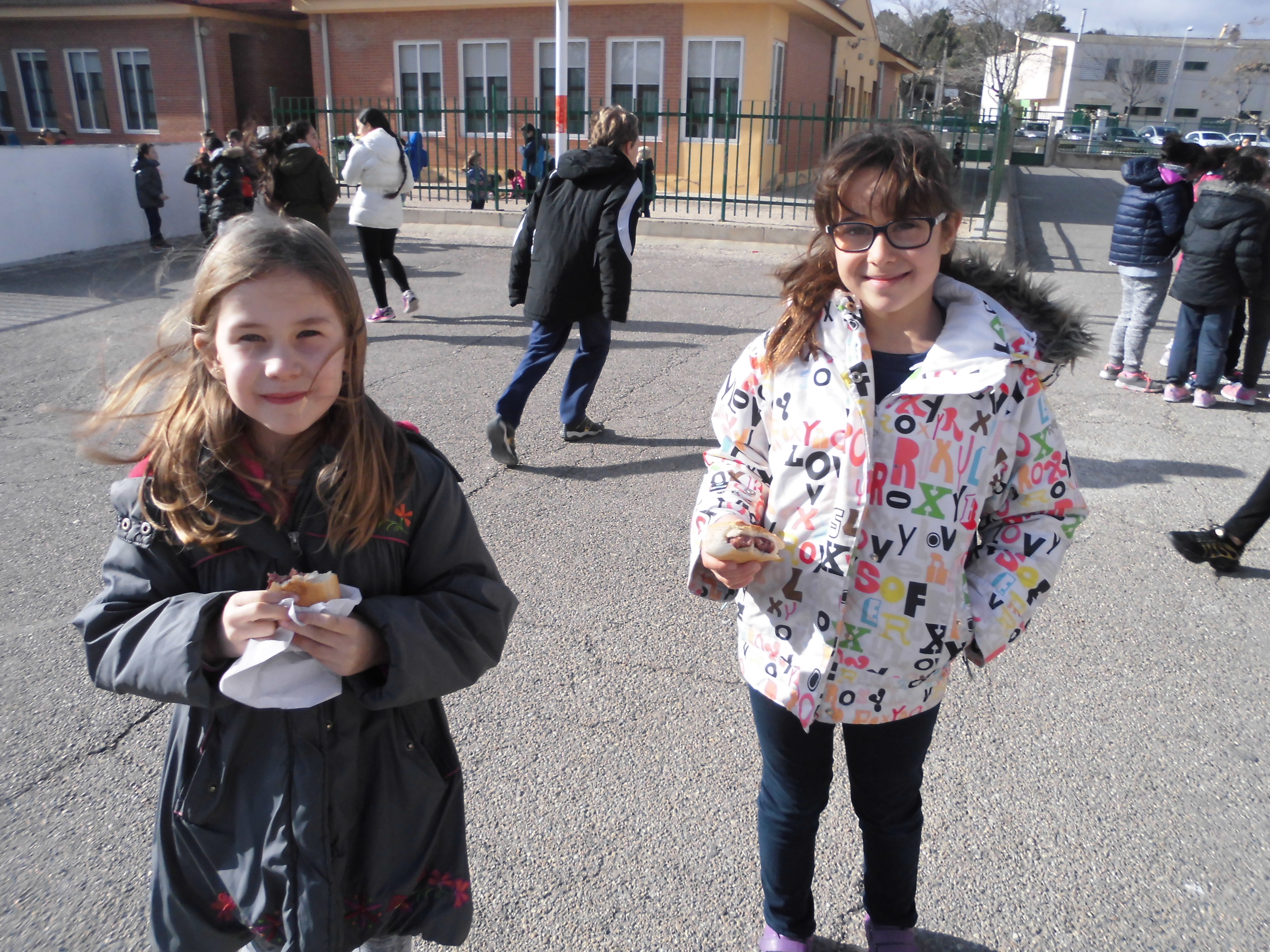 Hoy es Jueves Lardero y como dice su refrán…longaniza en el puchero. Así que un año más la AMPA del colegio nos ha traído para almorzar bocadillos de longaniza y de salchichas de pavo, a elegir!