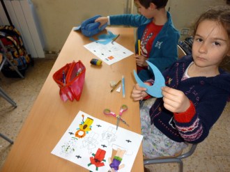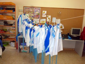 Hemos hecho y recortado nuestras medias lunas, cruces, cinturones, turbantes y pañuelos. Y nuestros palos para el baile.