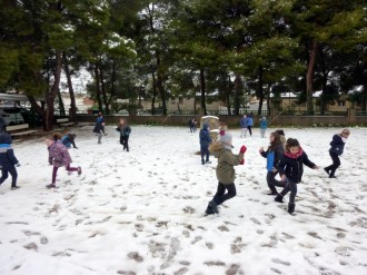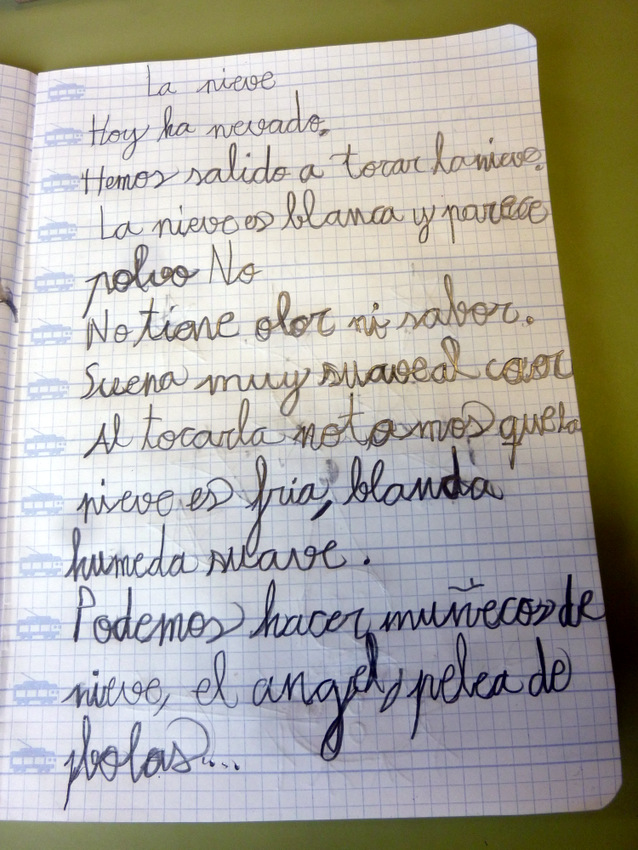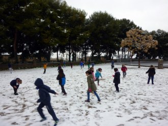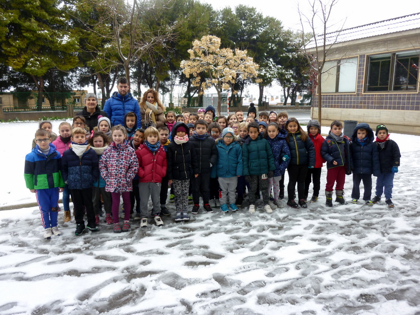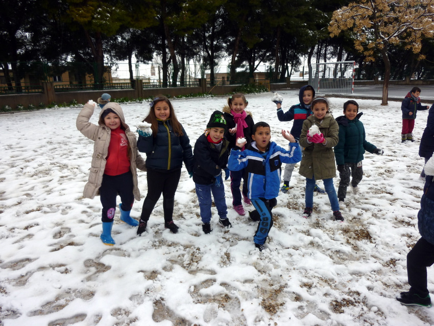 Salimos a hacernos una foto y jugar un poquito con la nieve. Algunos niños era la primera vez que la tocaban. ¡Qué ilusión!