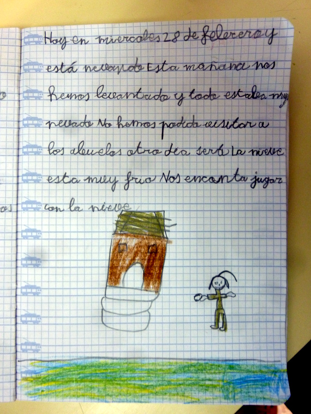 El día 27 de febrero nos sorprendió con una buena nevada. El patio estaba todo blanco. Teníamos previsto bajar al Centro de los Abuelos, pero no pudimos hacerlo.
