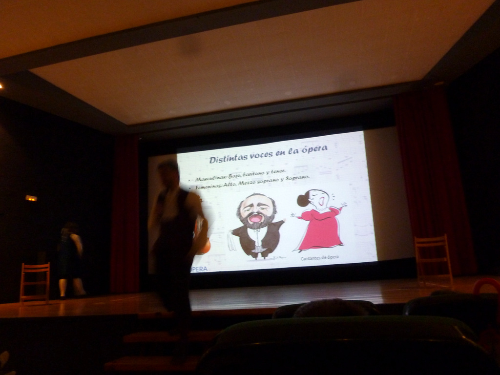 El día 5 de marzo, todos los niños de 1º y 2º bajamos al cine para ver un espectáculo de ópera. Dos actores y cantantes, nos fueron contando diferentes cosas sobre la ópera y algunos músicos.