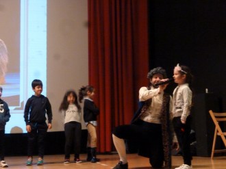 Y nuestro cantante se metió entre el público para dedicarnos algunas estrofas. Después volvimos caminando al cole para salir al recreo. Fue una mañana divertida.