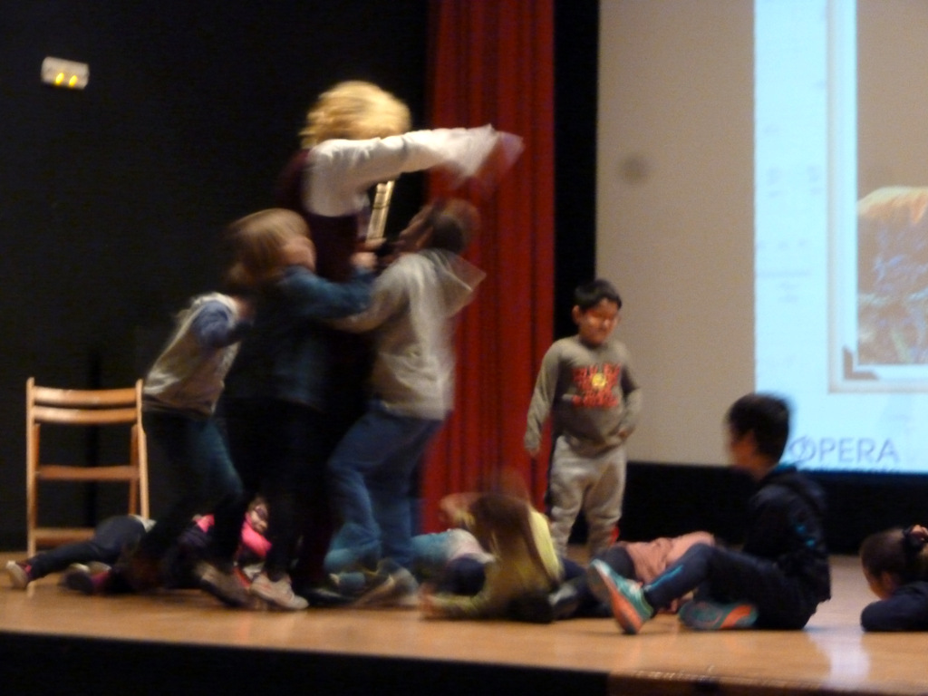 La ópera es un teatro con música. Luigi nos invitó a participar como personajes de «La flauta mágica», para ser la princesa Pamina o los animales del bosque.
