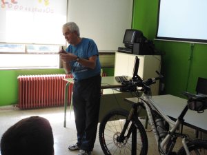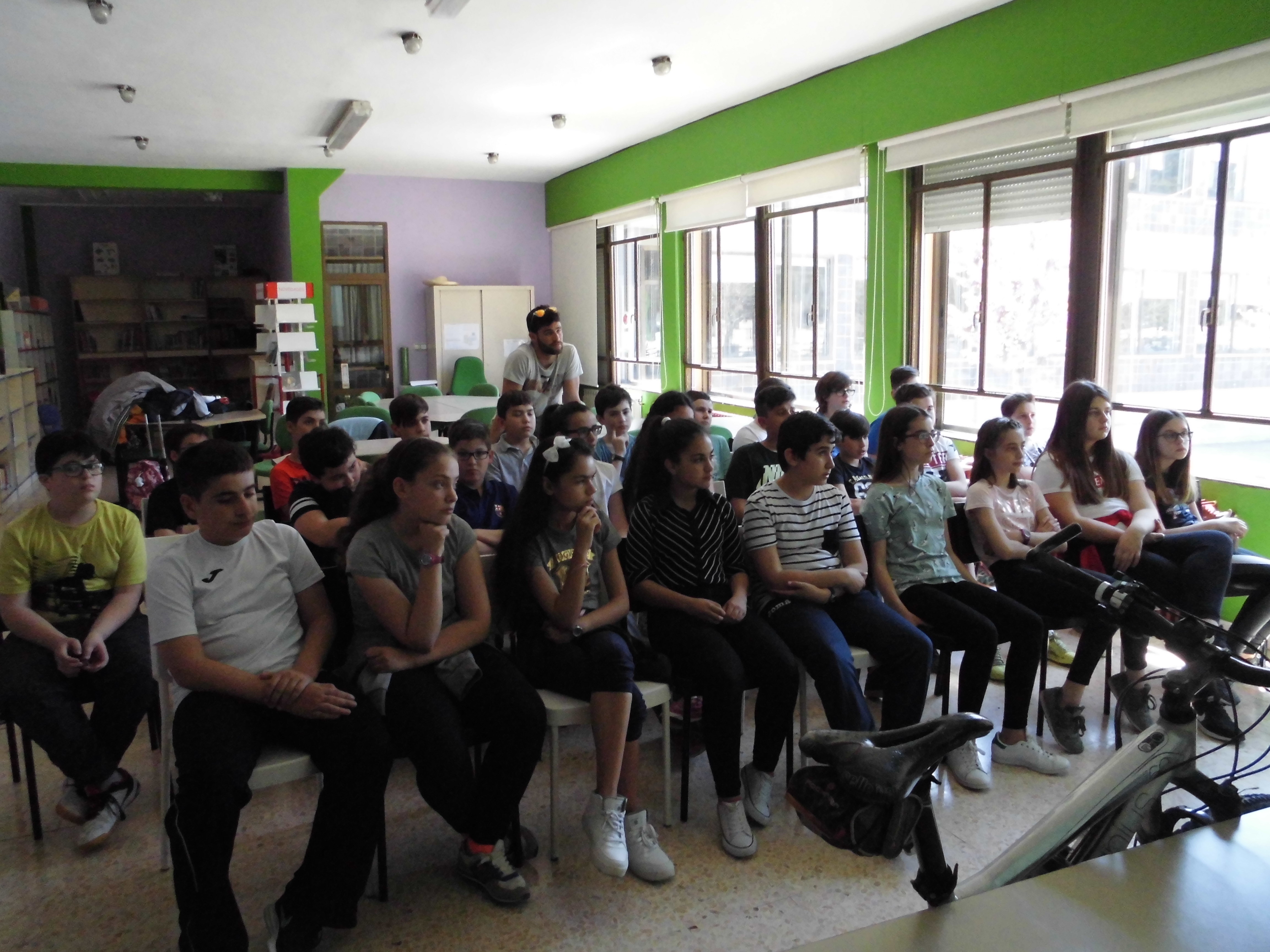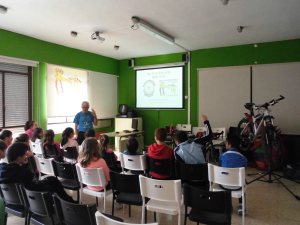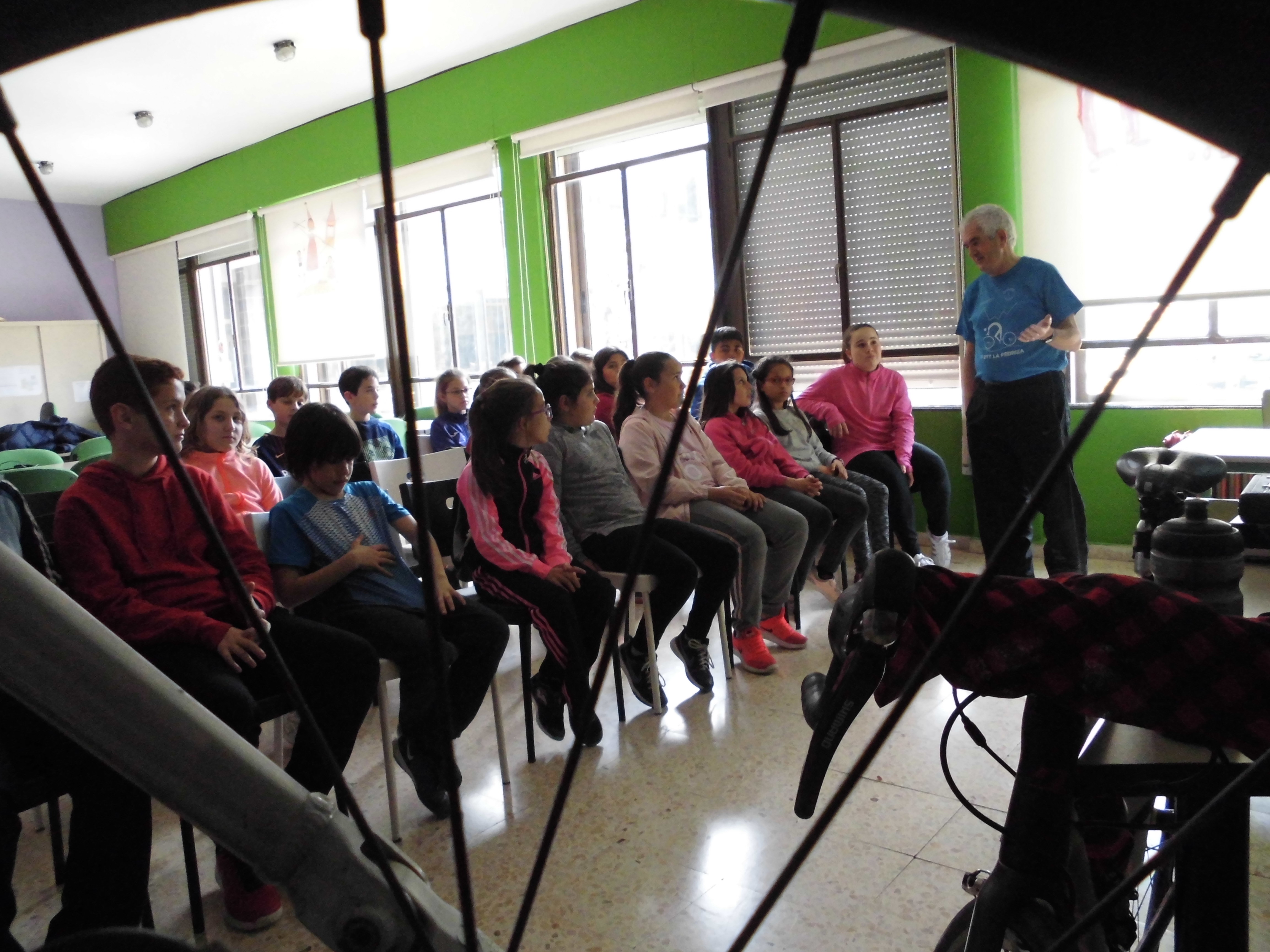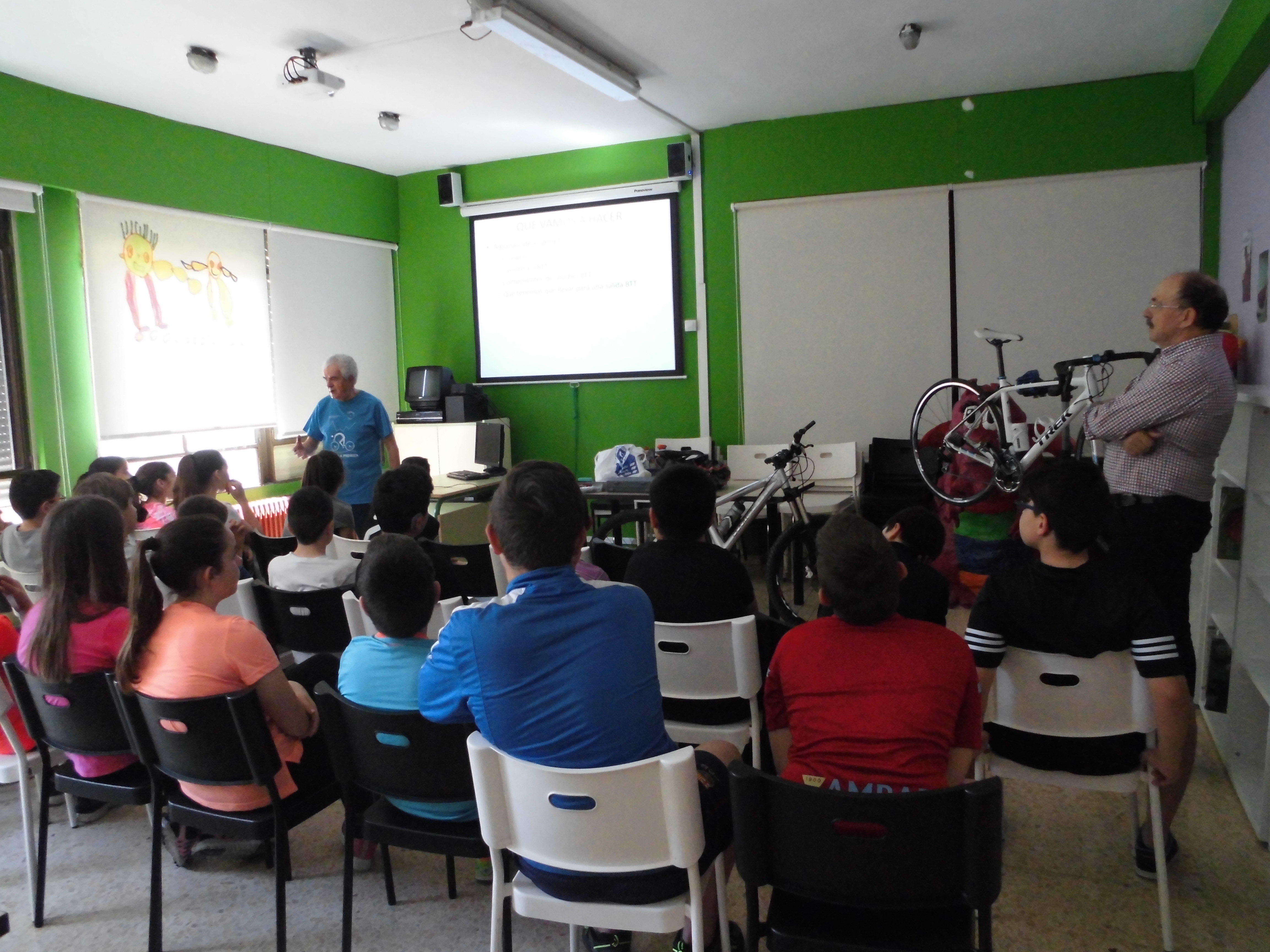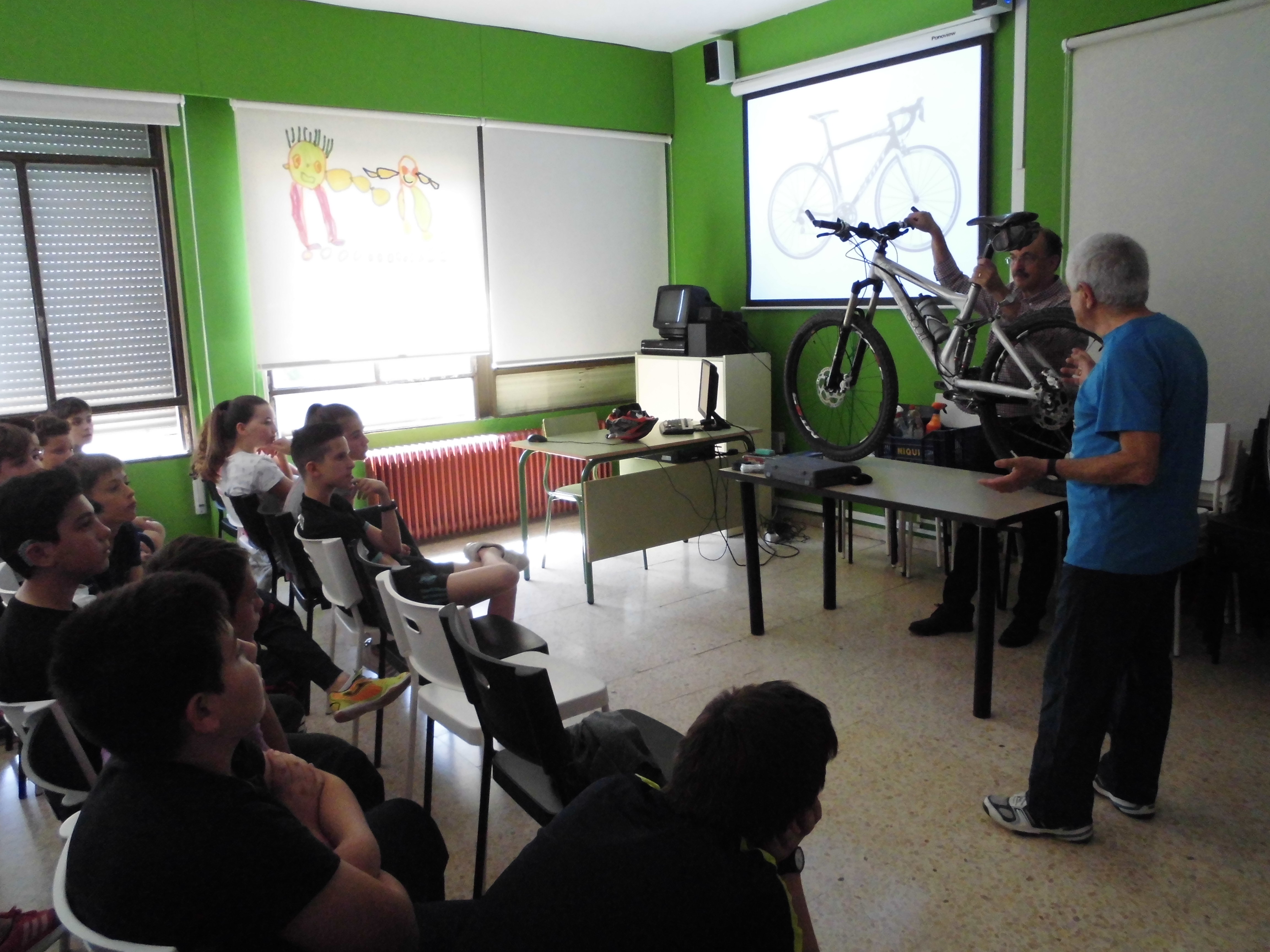 Como actividad previa a dichas sesiones hemos tenido unas charlas, realizadas por el Club Ciclista de Fuentes de Ebro «La Pedriza», donde nos han mostrado: cuándo «nació» la bicicleta y su evolución hasta nuestros días, diferentes tipos de bicicletas, partes de la misma, material necesario para realizar una salida… etc.