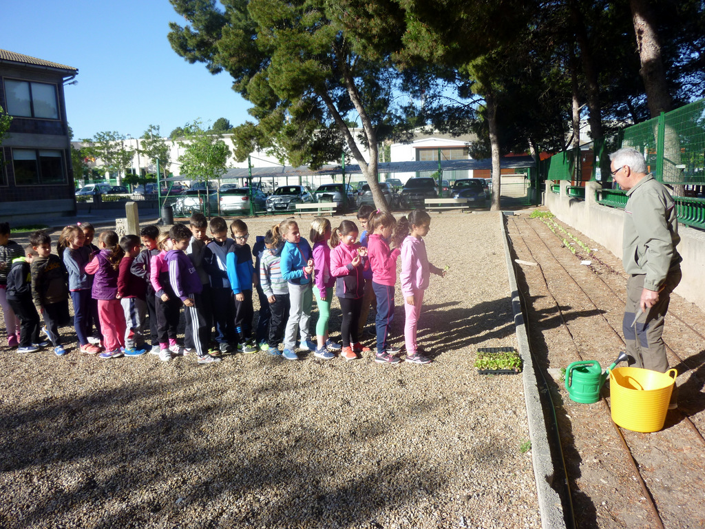 Con su ayuda y mucho cuidado hemos puesto plantero de lechuga maravilla.