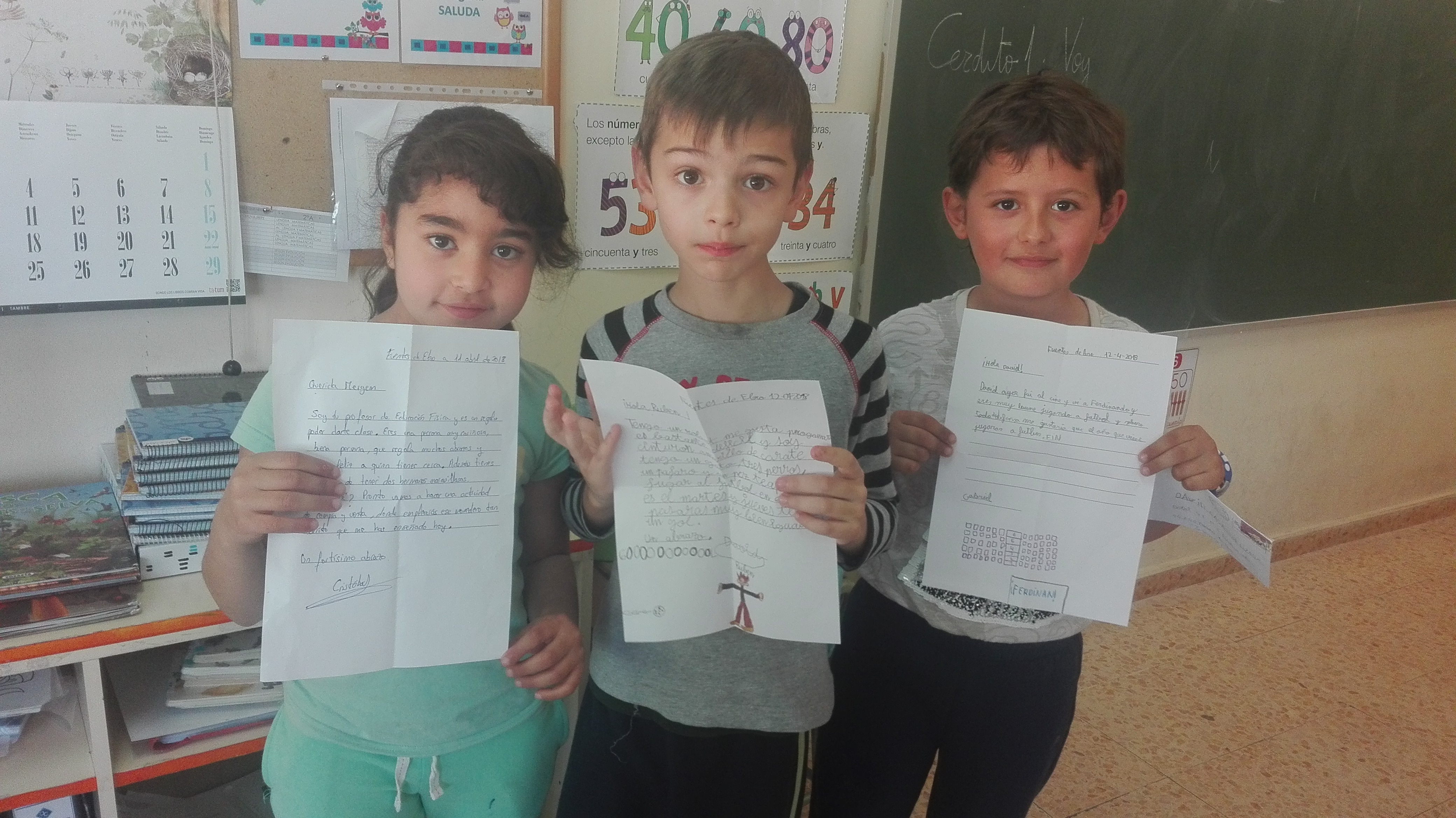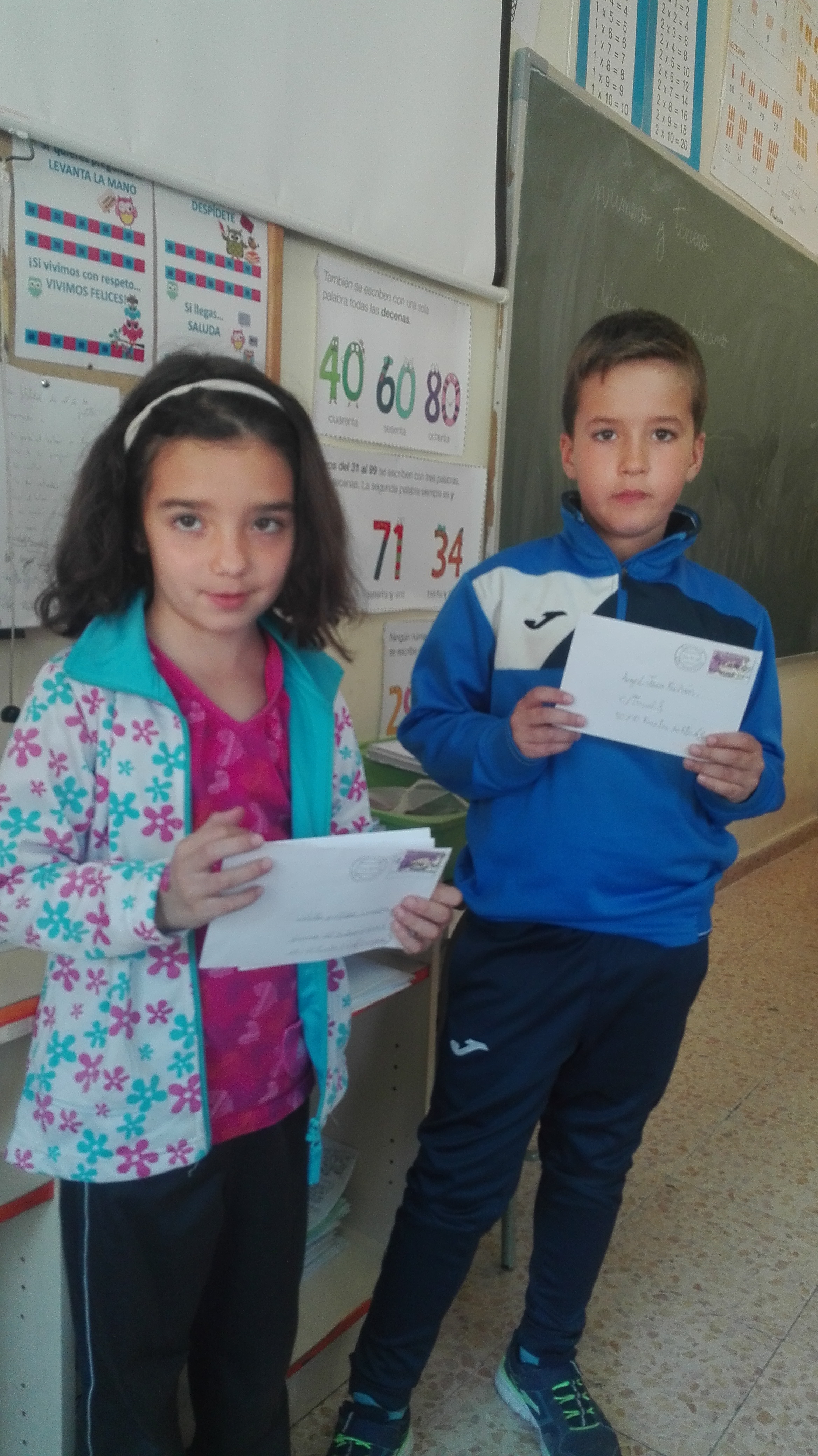 Este trimestre, los alumnos de 2º hemos aprendido a escribir cartas. También hemos tenido que rellenar el sobre: destintario, remitente y sello. Después hicimos un juego que consistía en envíar una carta a un compañero elegido al azar. Cristóbal y Olalla también participaron.