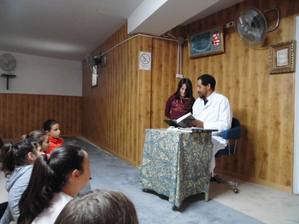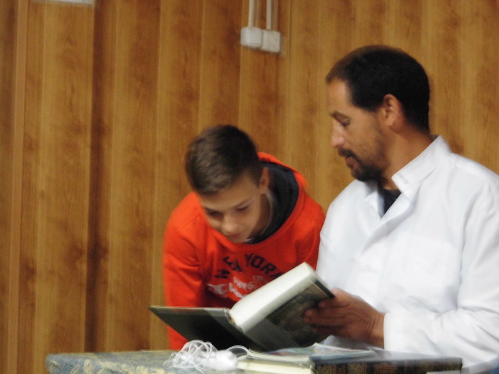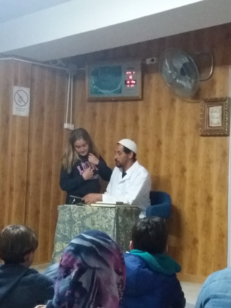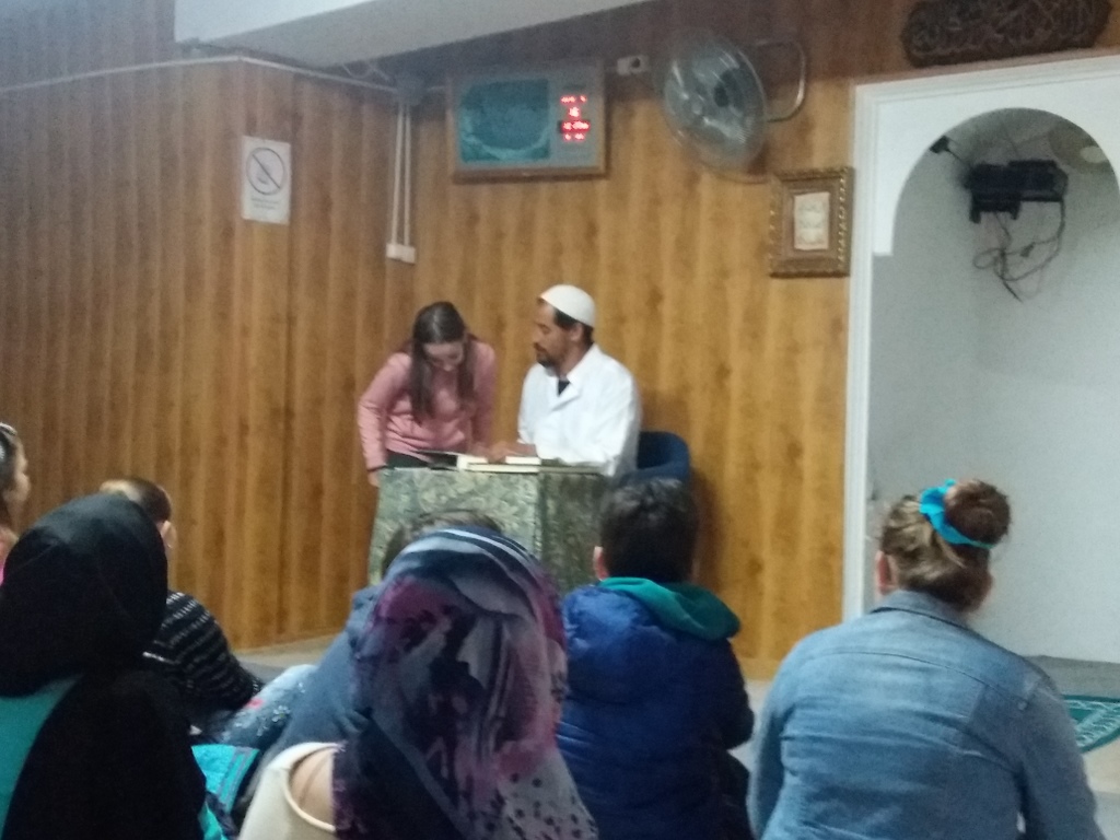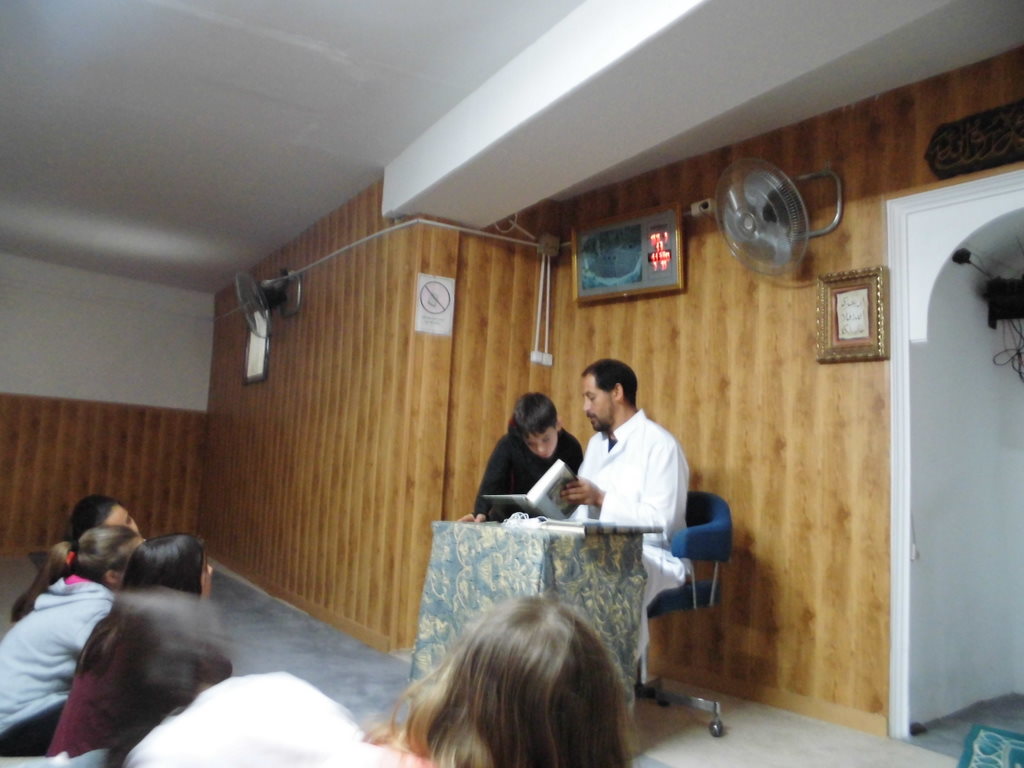 Jamal nos mostró el interior de lo que fue una antigua panadería y que hoy hace las funciones de mezquita. Nos explicó como realizan el Ramadán que empezaba ayer, como hacen sus rezos, pudimos leer el Corán en castellano y en árabe, nos ofrecieron te de hierba buena y nos regalaron unas chucherías y nuestros nombres escritos en árabe. También respondieron a todas nuestras dudas y preguntas y desde aquí queremos darles las gracias por su acogida y su amabilidad un curso más.