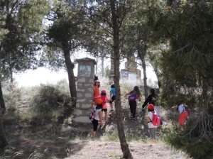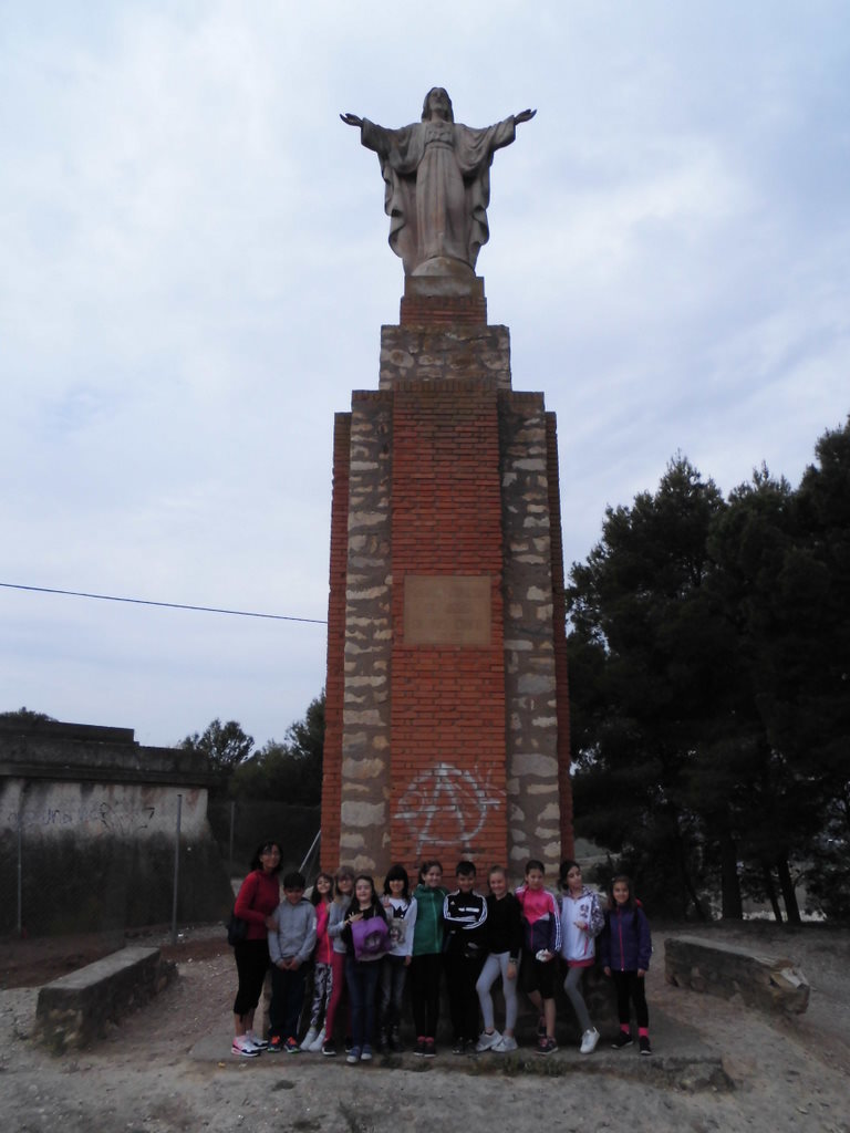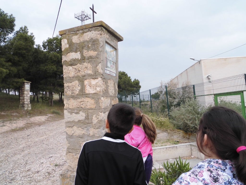 La primavera está aquí,:las flores , insectos y plantas están en plena ebullición. Las hormigas parecían muy inquietas, los almendros con el fruto aún verdes, las higueras con las brevas muy adelantadas, y casi todo el camino con restos de alabastro. Todo esto y más hemos visto . También hemos reconocido los números romanos que marcan el Vía Crucis, los azulejos que nos enseñan la historia de Jesús, y al final la figura del sagrado Corazón que nos recibe con los brazos abiertos desde 1955.