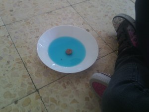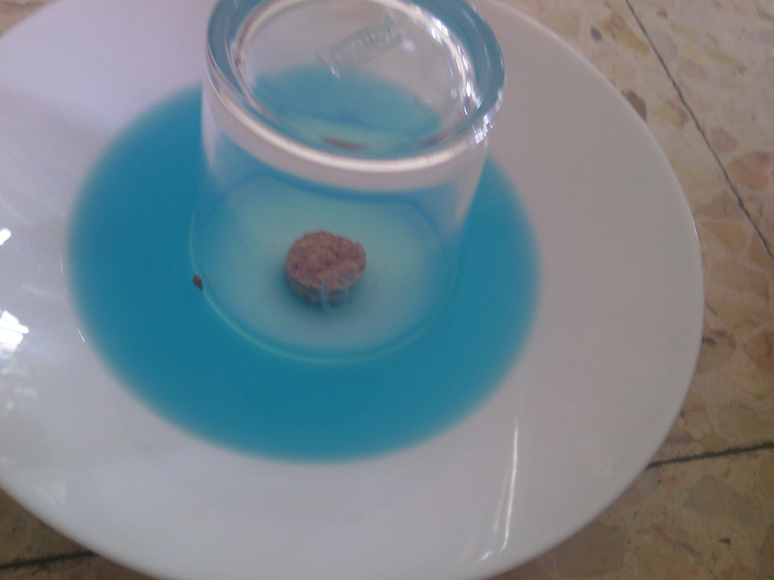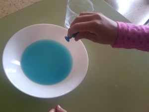 Para observarlo mejor he añadido unas gotas de colorante al agua.