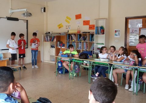 Miguel, Samuel, Néstor y Jorge han explicado en Inglés a la clase de 5º B: