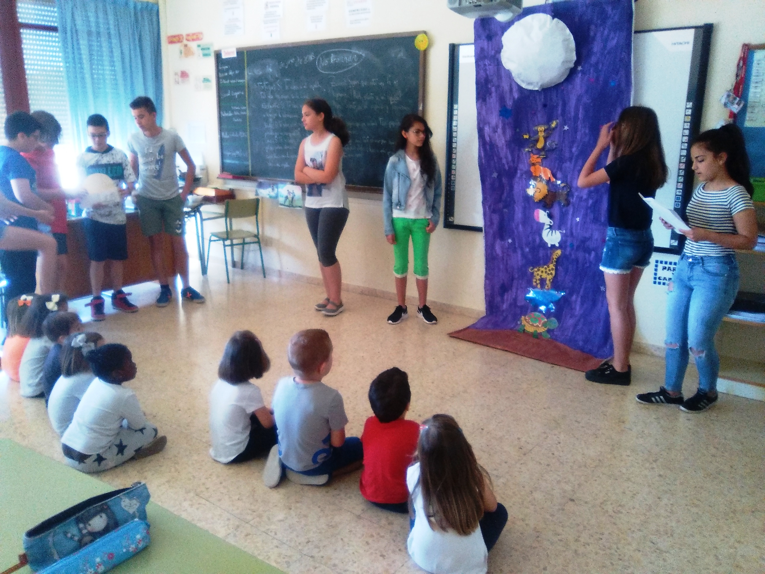 HOY LOS CHICOS Y CHICAS DE 5º Y 6º DE PRIMARIA NOS HAN CONTADO EL CUENTO «A QUÉ SABE LA LUNA». NOS HAN GUSTADO MUCHO LOS MURALES QUE HAN TRAÍDO A LAS CLASES, CÓMO IBAN CARACTERIZADOS, LOS JUEGOS QUE HAN PREPARADO PARA EL FINAL… HASTA NOS HAN DADO A PROBAR UN CACHITO DE LUNA. ¡GRACIAS!