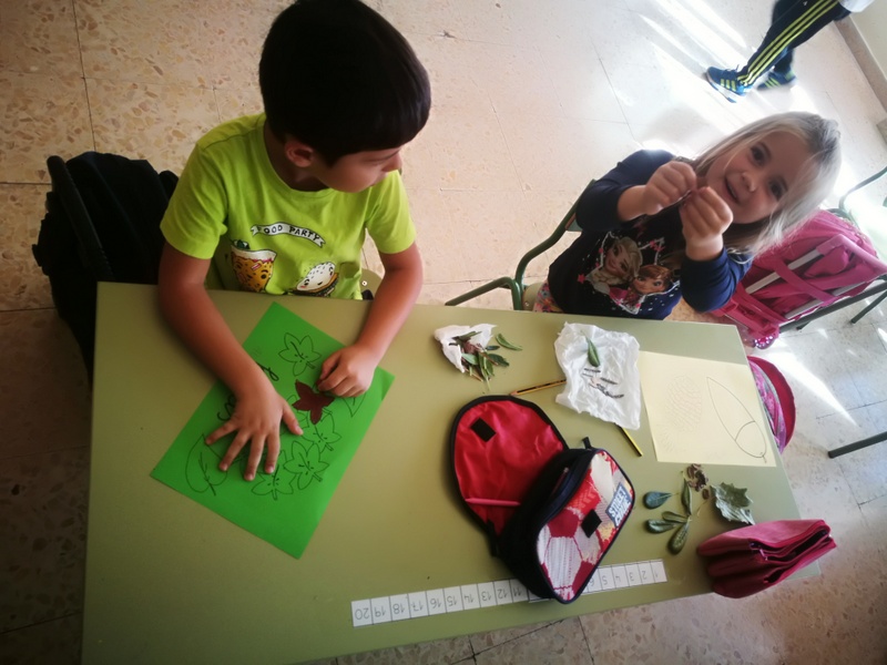 Con la llegada del otoño, hemos llevado a cabo la segunda inclusión con primero de primaria, aprovechando lo que estos días nos encontramos por las calles y parque: hojas, ramas, ¿setas?, y frutos.