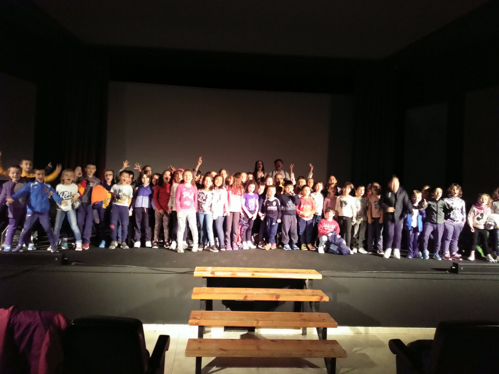 Luego subimos todos al escenario con Silvia y Javier, la actriz y el actor que nos impartieron la clase. Ha sido muy divertido.