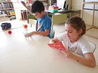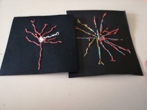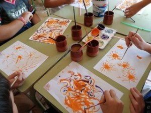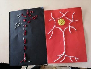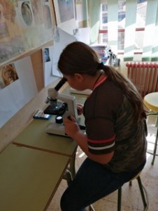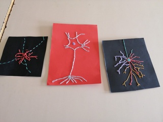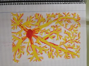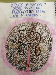 Luego por grupos hemos ido al aula de DC y hemos hecho preparaciones (de piel de cebolla, de piel de paladar y de sangre) y las hemos observado al microscopio. También hemos hecho copias de dibujos de neuronas de Ramón y Cajal unos con temperas, otros con rotuladores y otros hilos y lanas.