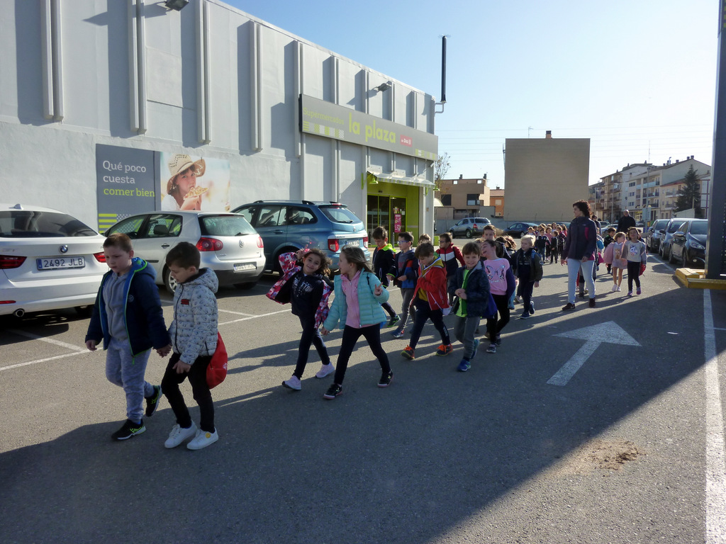 Salimos desde el cole y fuimos por el centro del pueblo para cruzar por los pasos de peatones hasta el otro lado de la carretera.