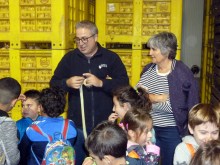 Después nos enseñó la etiqueta DOP de nuestra cebolla y pasamos a la nave donde las van separando por peso para poner en bolsas.