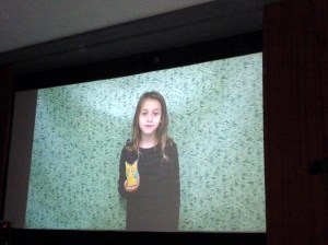 Y, ya preparados, Ana explicó que hemos hecho en cada clase un corto con ella, en la actividad de Desarrollo de Capacidades. Ha sido sobre el cuento El monstruo de colores, una historia preciosa sobre las emociones.