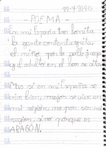 LENGUA 1º-2ºPOEMA DE JUAN 25 abril, 2020 olamibla Como hemos trabajado los poemas en lengua, Juan ha compuesto uno dedicado a su tierra. Y no le ha quedado nada mal. MUY BIEN JUAN Comparte esto: Haz clic para compartir en X (Se abre en una ventana nueva) X Haz clic para compartir en Facebook (Se abre en una ventana nueva) Facebook Me gusta Cargando... Relacionado Publicado por olamibla Ver todas las entradas de olamibla