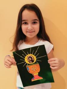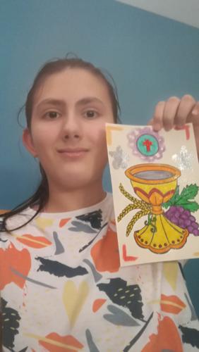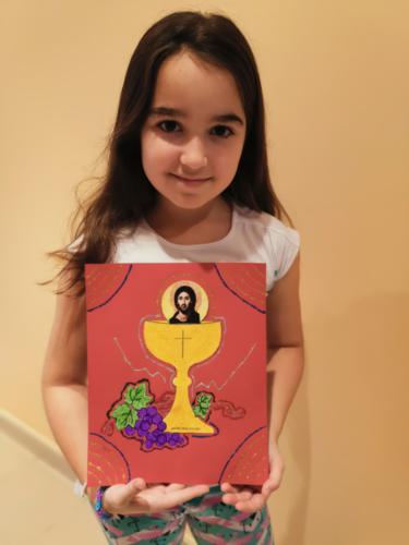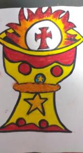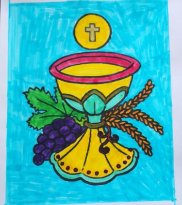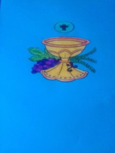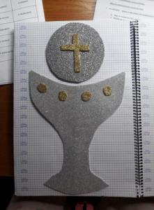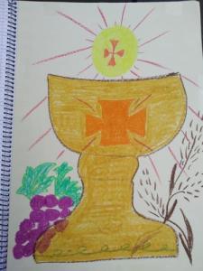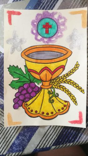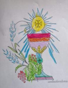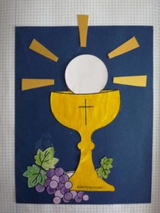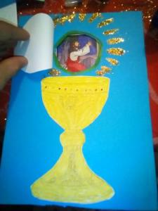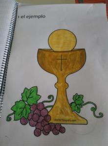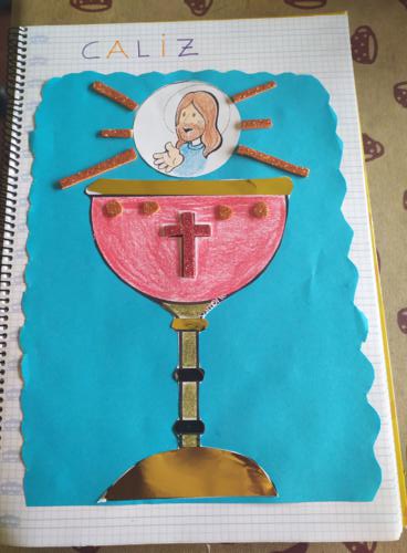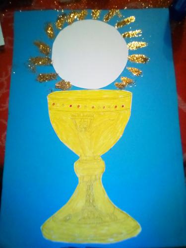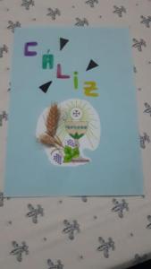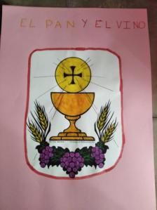 Para recordar esa Primera Comunión hemos hecho unos cuadros muy bonitos formados por cálices, vino, hojas, trigo,etc