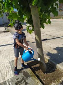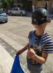 Así que SuperSergio se ha puesto su traje de héroe y ha salido por las calles a recoger lo que encontraba sucio y a reciclar lo que debía en cada contenedor. ¡Mirad que bonito ha dejado todo y como pasea por ese campo con amapolas.