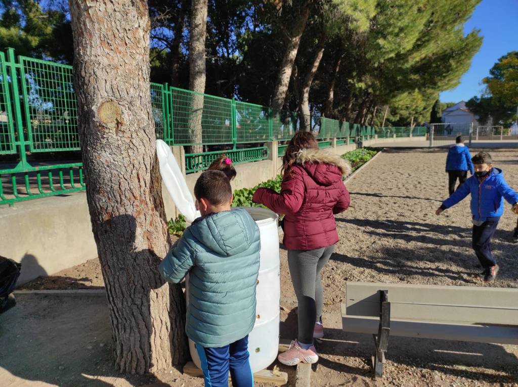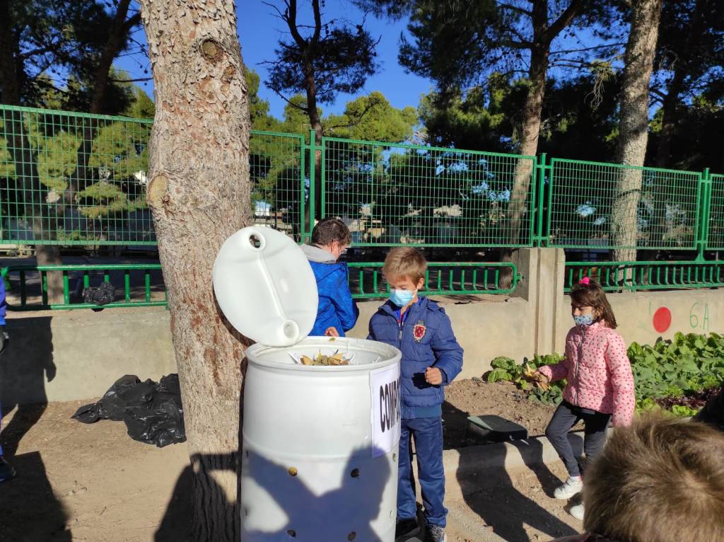 Para poder generar compost y echarlo al huerto del colegio y que el sustrato tenga nutrientes, los chicos y chicas de 4º de Primaria se encargaron de poner en marcha los compostadores del colegio a través de un taller de reciclaje de residuos orgánicso