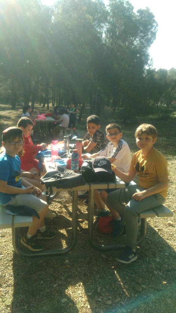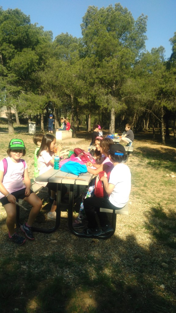 El miércoles pasamos un rato estupendo en contacto con la naturaleza. Todos los chicos y chicas de 3º nos fuimos de ruta hacia los pinos y el Calvario. Fuimos parando para descubrir algunas curiosidades del entorno, nos hicimos fotos en el monumento del Calvario y seguimos nuestra ruta hasta llegar a las mesas para almorzar y compartir algo de lo que llevábamos. También tuvimos mucho rato para jugar y correr, mirar el paisaje, disfrutar de las flores, etc.