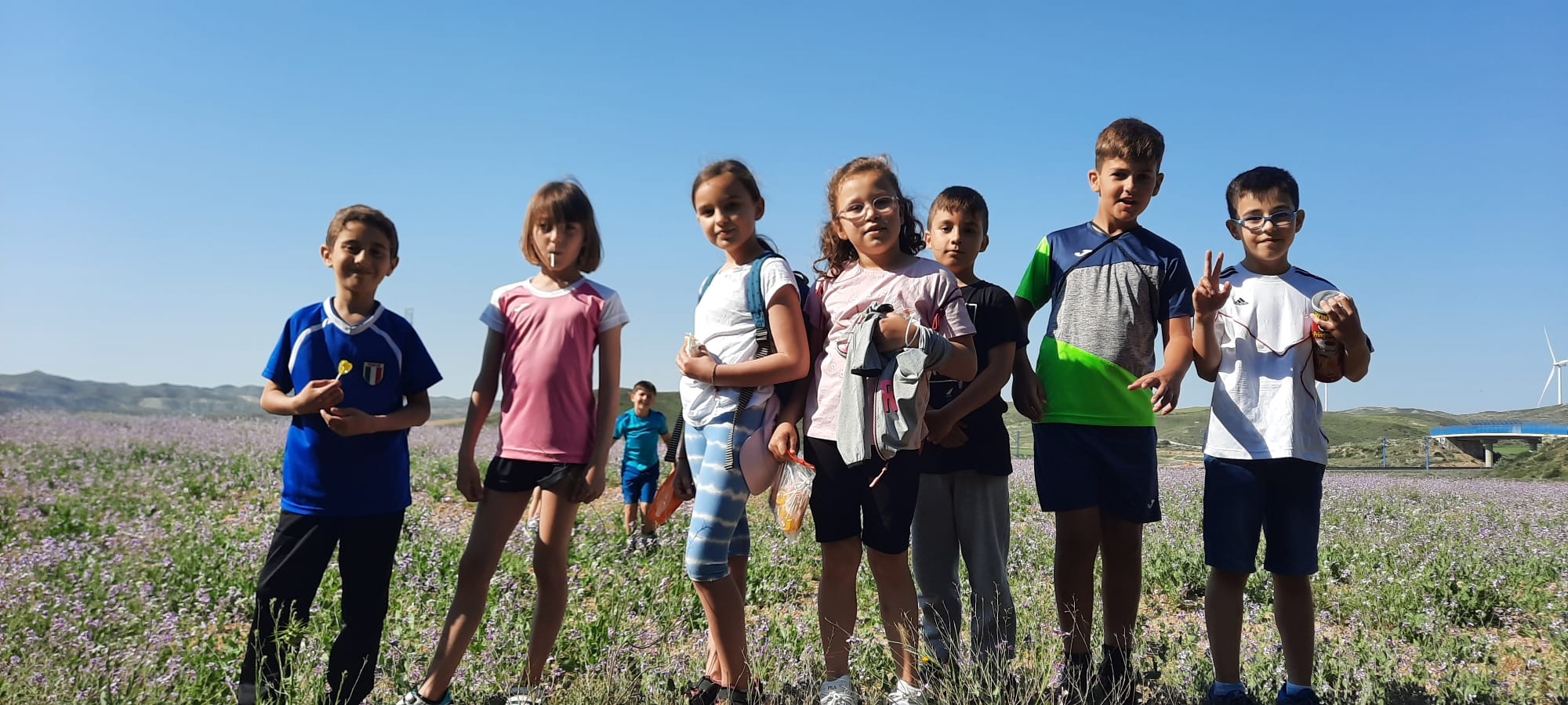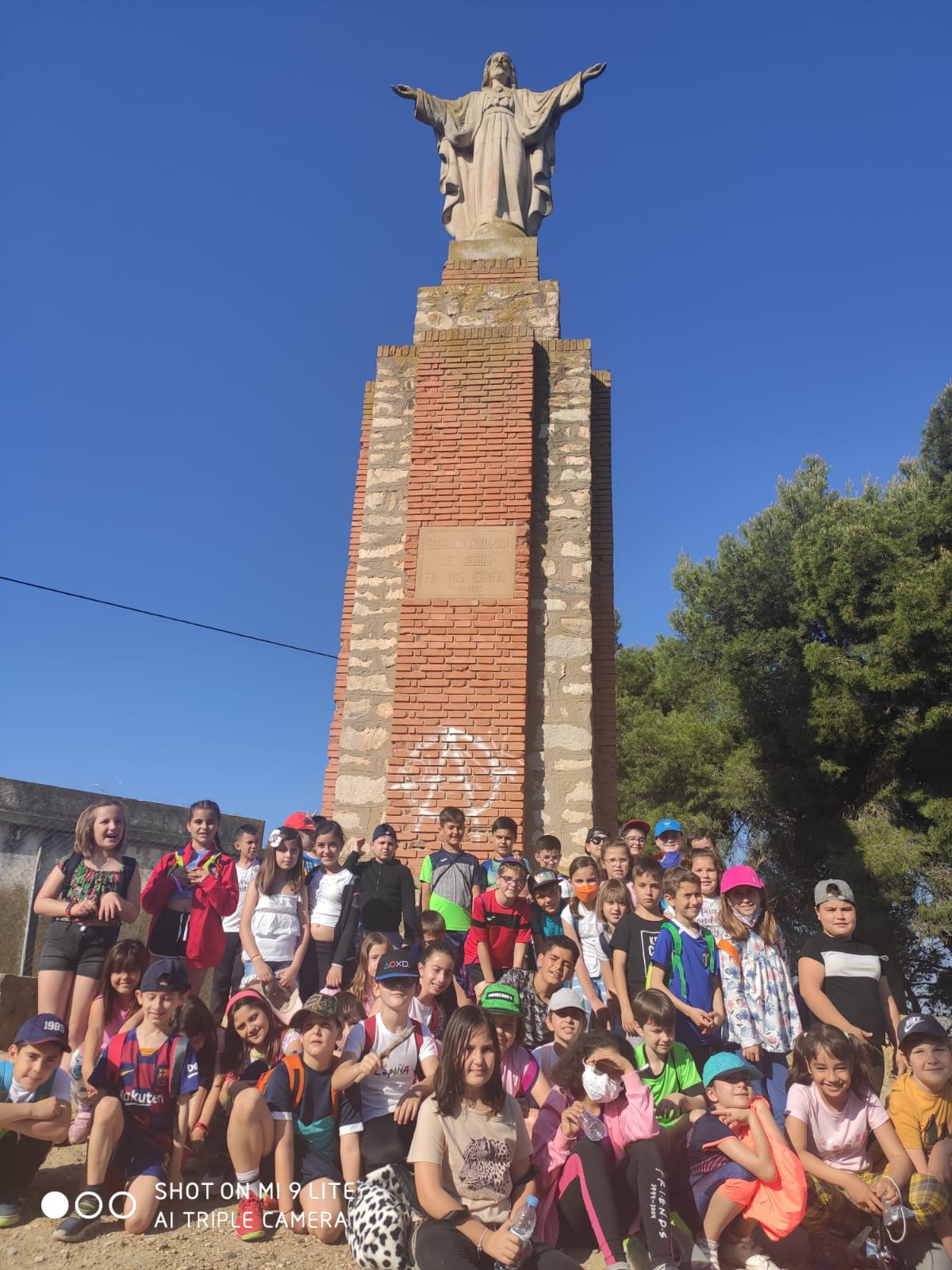 El miércoles pasamos un rato estupendo en contacto con la naturaleza. Todos los chicos y chicas de 3º nos fuimos de ruta hacia los pinos y el Calvario. Fuimos parando para descubrir algunas curiosidades del entorno, nos hicimos fotos en el monumento del Calvario y seguimos nuestra ruta hasta llegar a las mesas para almorzar y compartir algo de lo que llevábamos. También tuvimos mucho rato para jugar y correr, mirar el paisaje, disfrutar de las flores, etc.