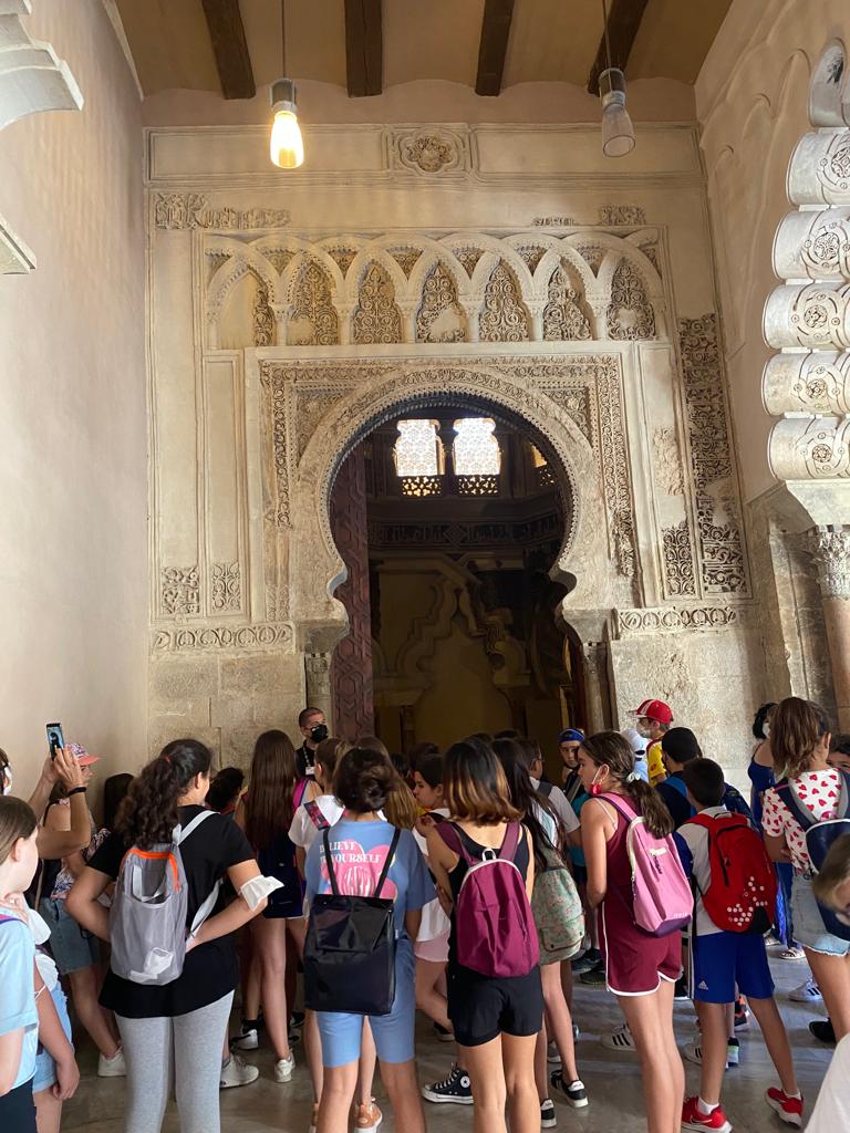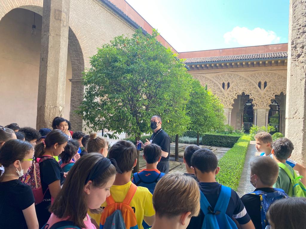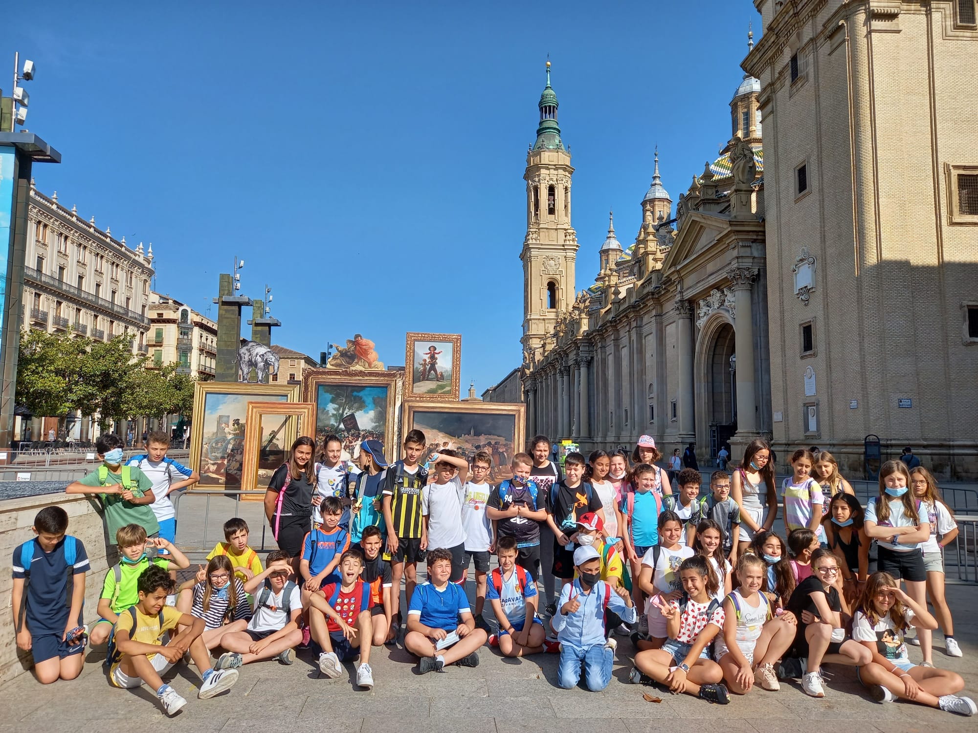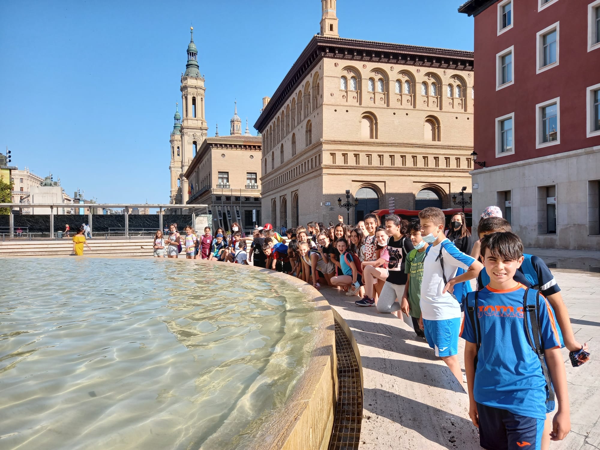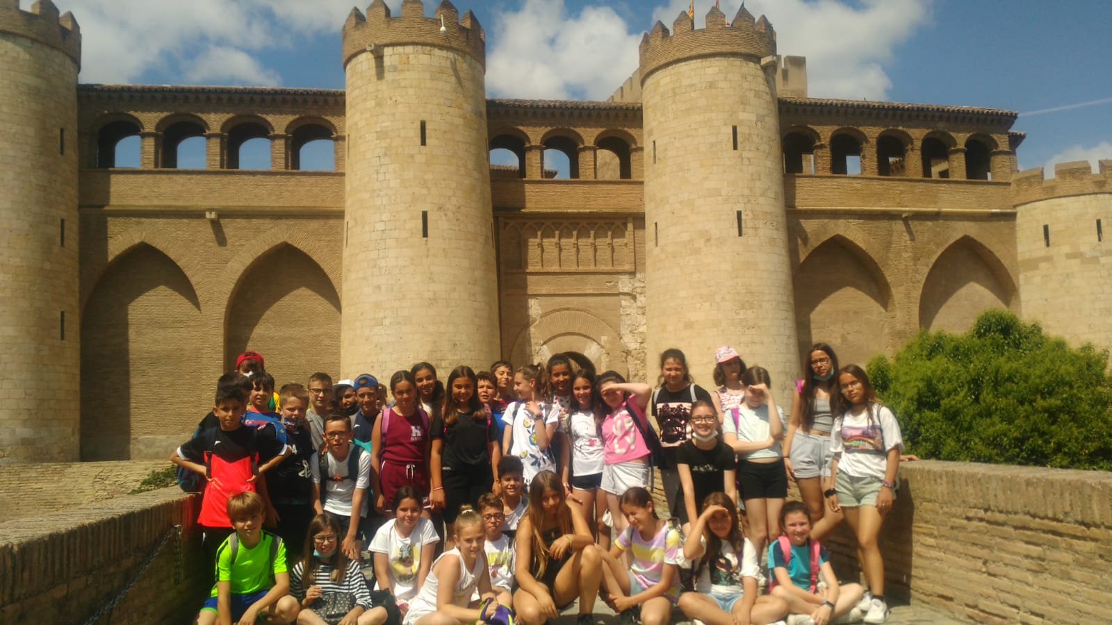 El pasado lunes 23 de mayo, los alumnos y alumnas de 5º de primaria fuimos de excursión al palacio de la Aljafería. Aprovechando el buen tiempo, paseamos por la ribera, lo que nos permitió visitar también la plaza y Basílica del Pilar y la Seo, así como las murallas romanas.
