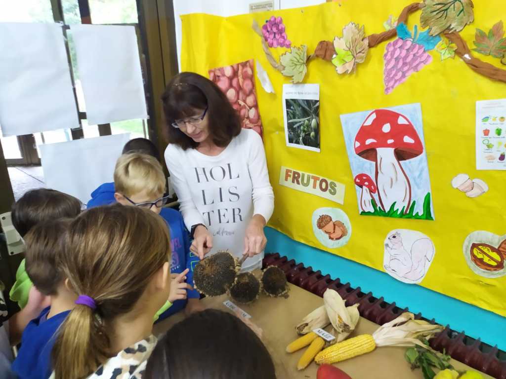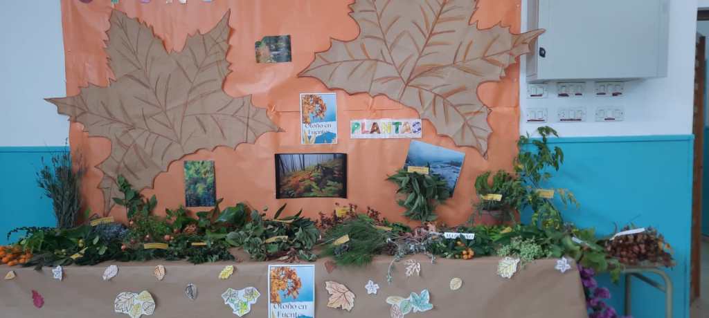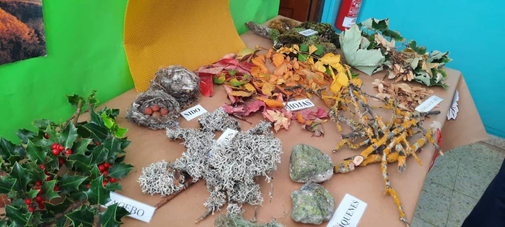 En la entrada del cole hemos puesto una selección de elementos representativos de esta estación. Lo hemos dividido en tres bloques: