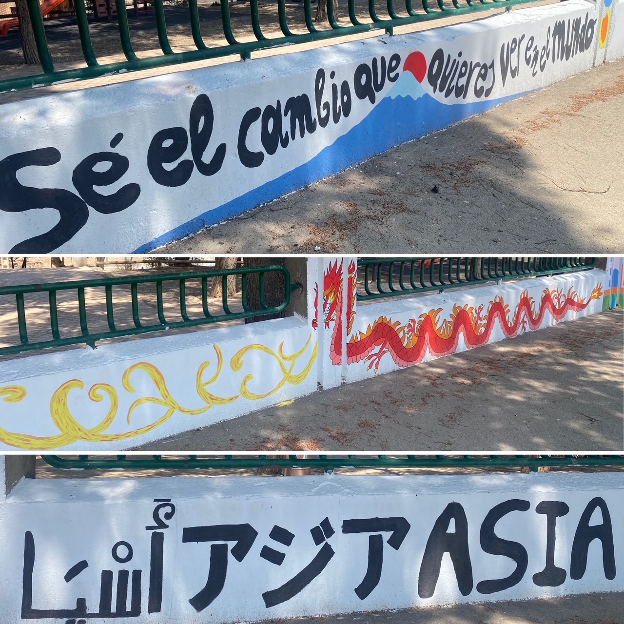 Desde el colegio, se propuso terminar de pintar las formas geométricas y continuar con los rincones de los continentes que empezamos el curso anterior. Este año comenzamos con Asia.