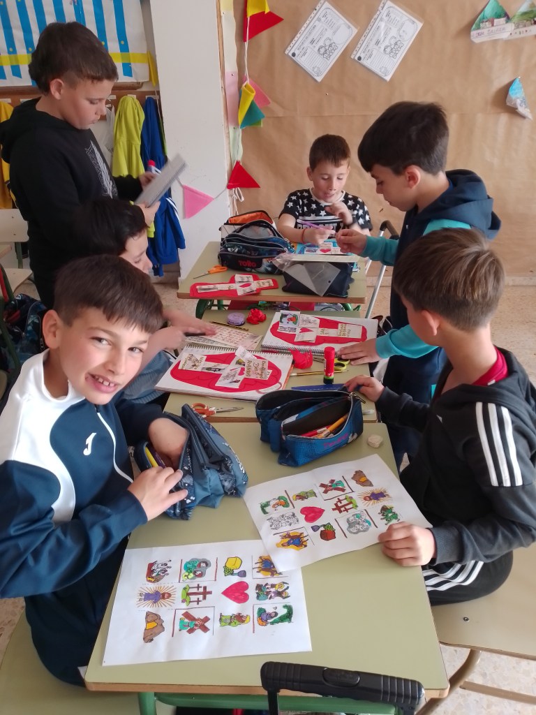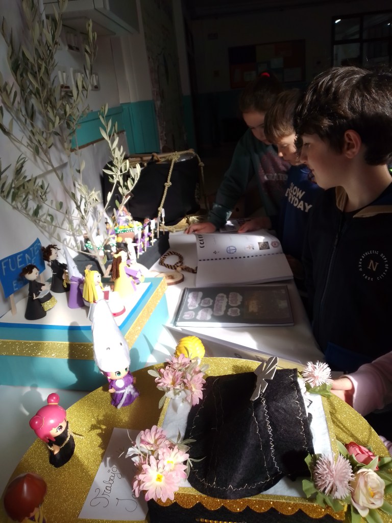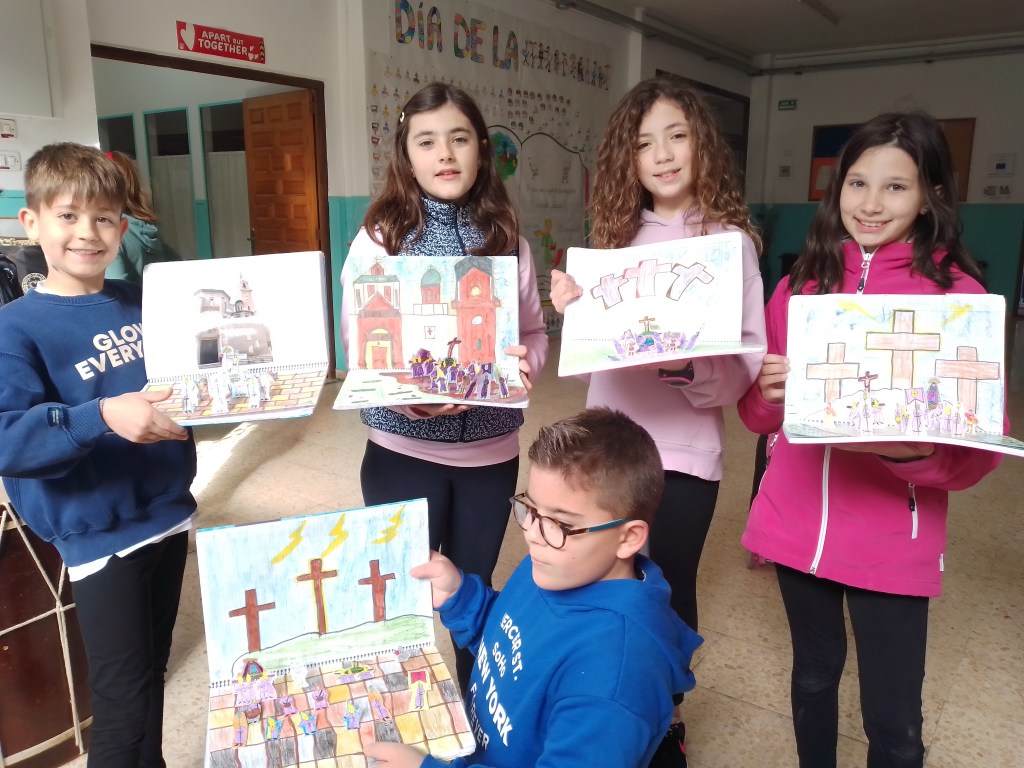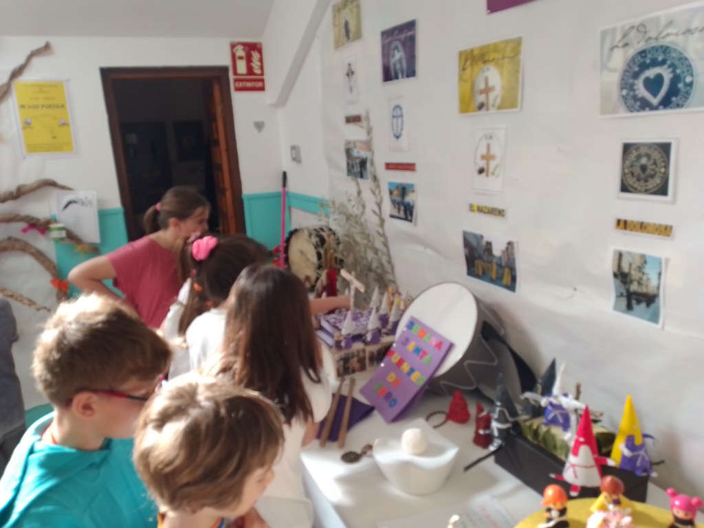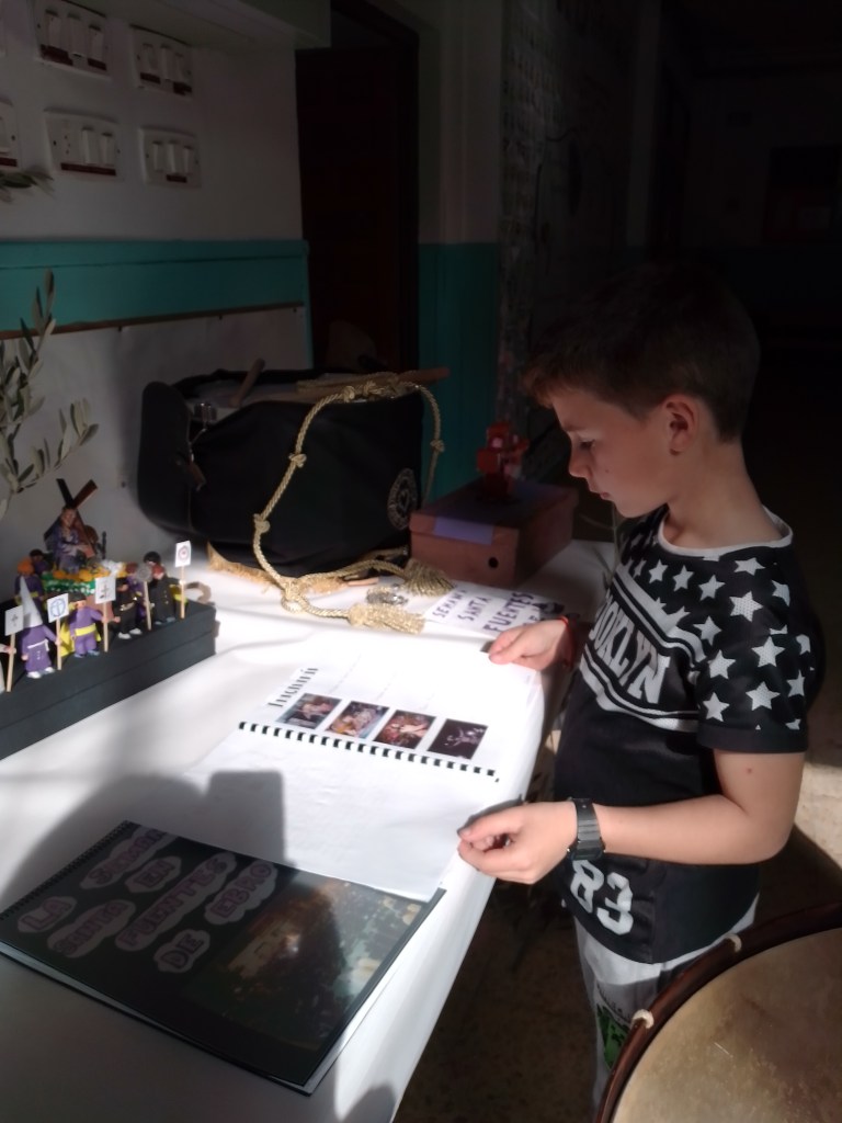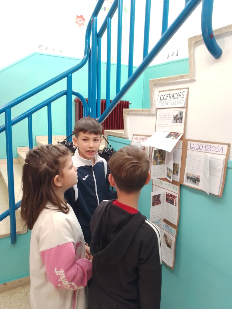 Estos días todos los chicos y chicas del cole estamos viendo la exposición que hemos preparado con motivo de la Semana Santa de Fuentes. Hemos podido tocar instrumentos como la corneta, la trompeta, el tambor y un gran bombo. Además también hemos visto los trabajos tan bonitos que han hecho nuestros compis de 5º,llenos de información, fotografías ,entrevistas, curiosidades,…y con unas presentaciones muy originales y preciosas. Desde aquí les felicitamos a todos/as. 3º y 4º también contribuimos con nuestras procesiones y nuestras cruces decoradas.