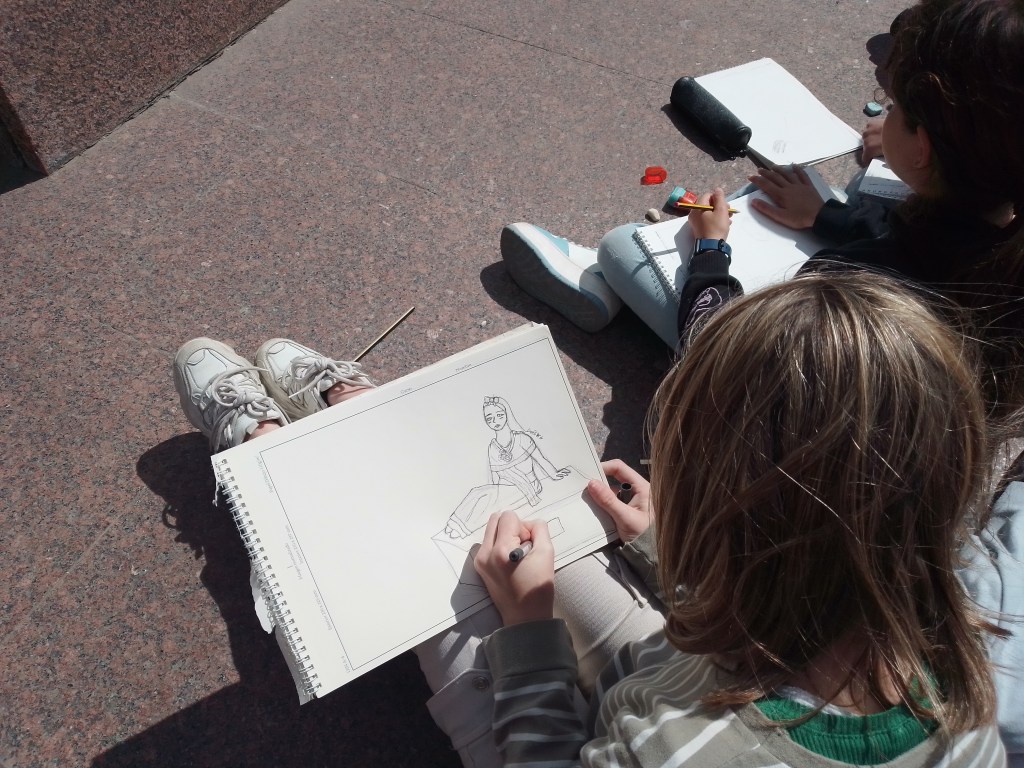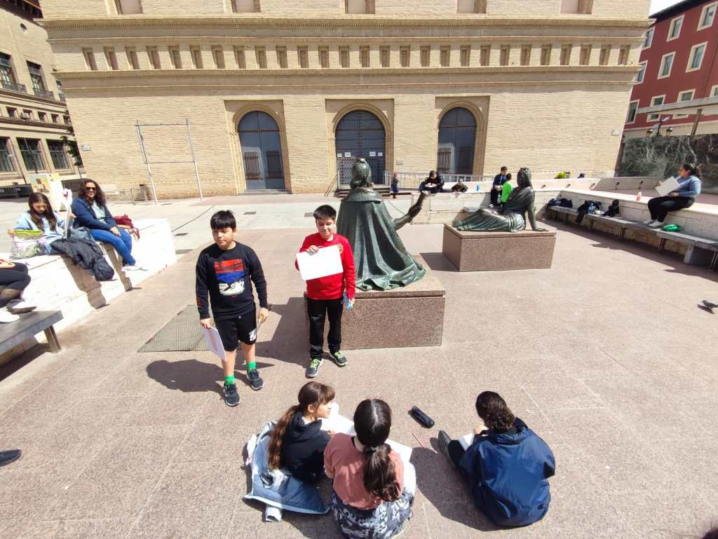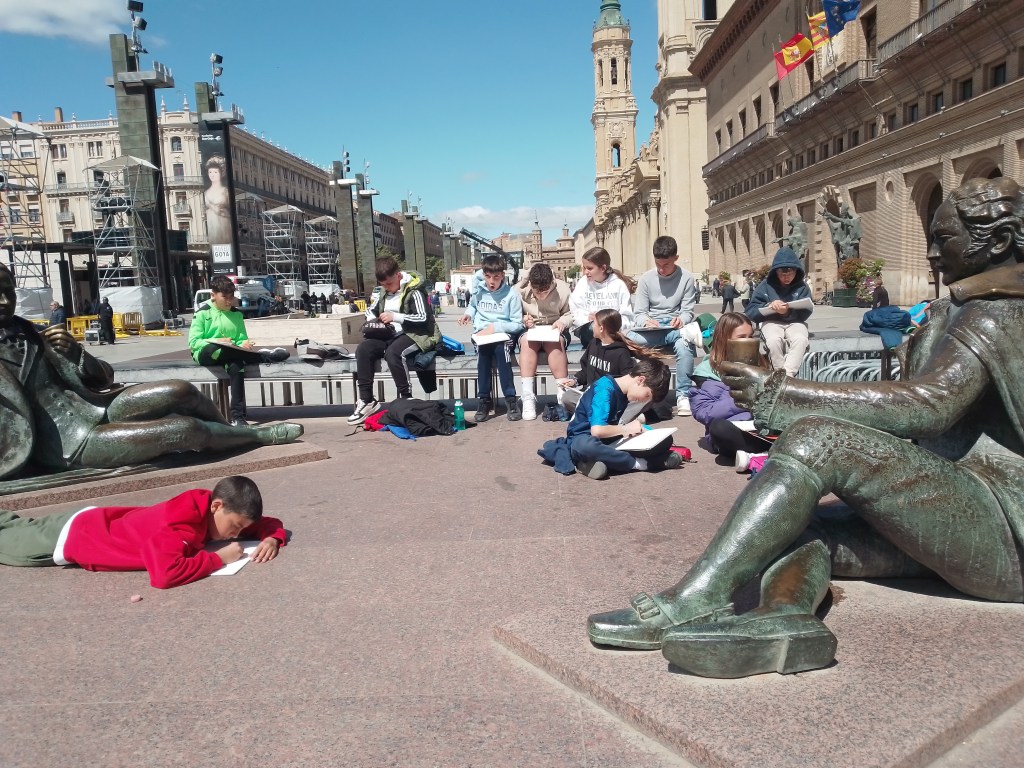 Pero aquí no ha terminado todo sino que después hemos almorzado en la Plaza del Pilar junto a las figuras goyescas de los Majos y Majas para terminar haciendo una sesión de pintura al aire libre tratando de plasmar esas figuras en nuestros blogs.