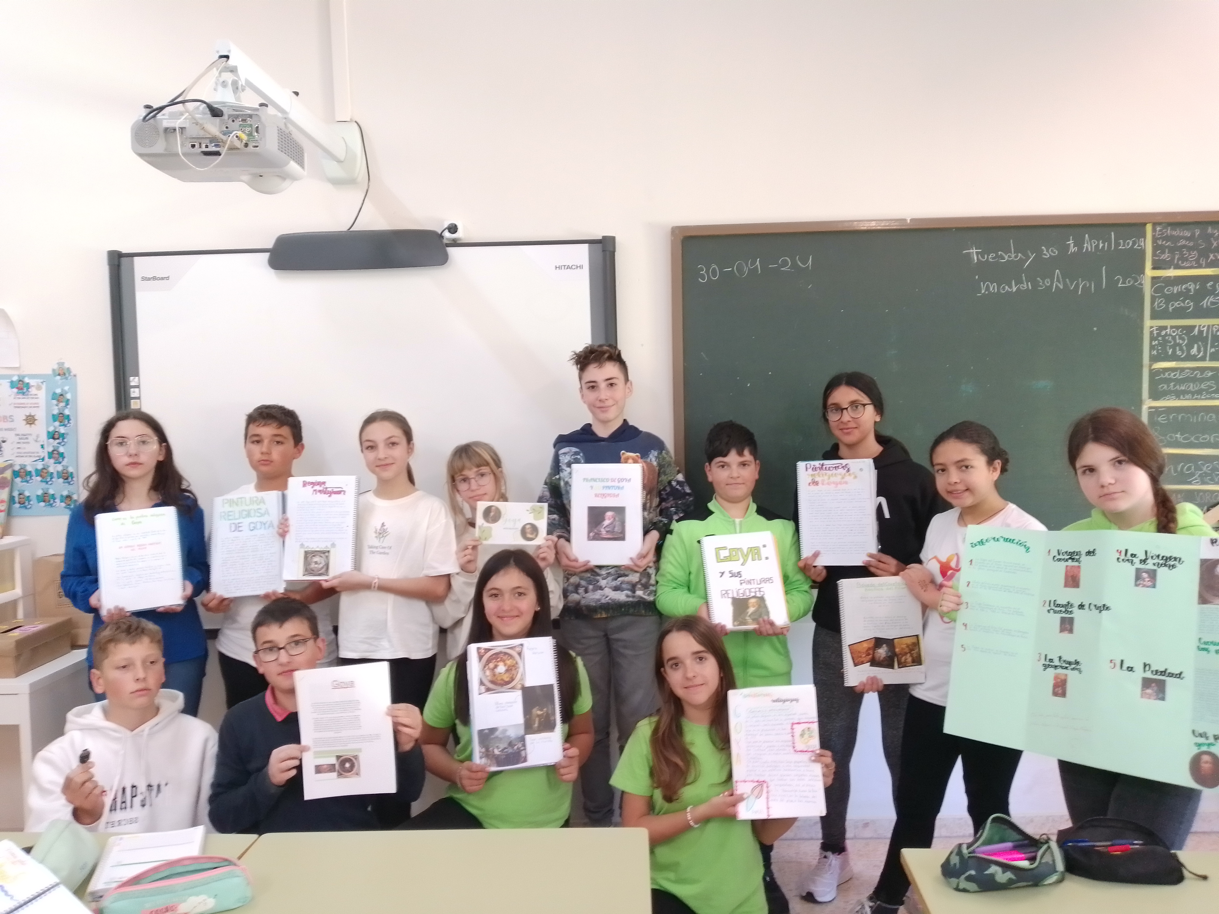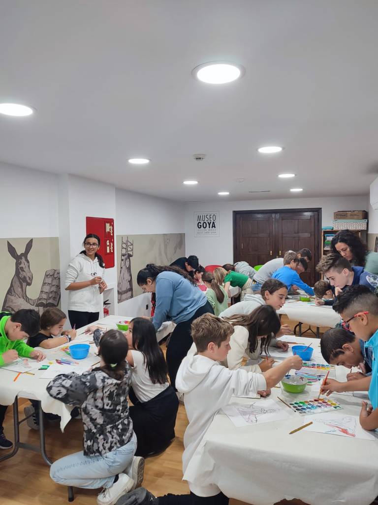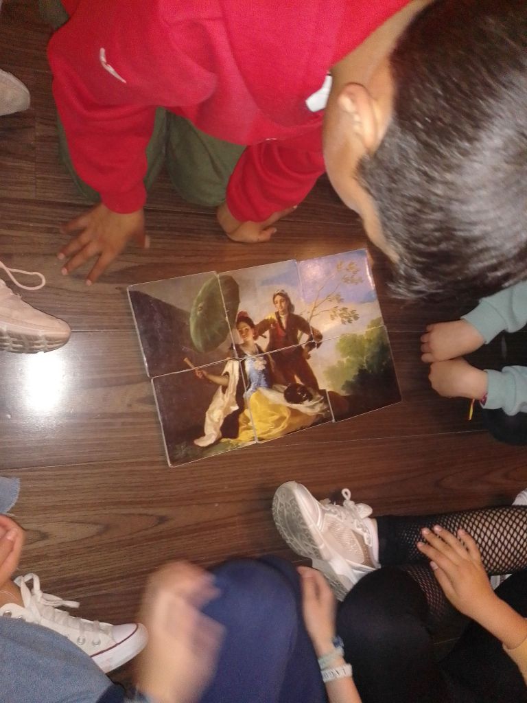 Esta mañana los chicos y chicas de 6º hemos realizado una visita al Museo de Goya. La verdad es que hemos aprendido y recordado mucho de lo que ya sabíamos de este gran artista aragonés: además de ver muchas de sus obras colgadas en las salas del museo, hemos podido realizar nuestra propia versión con acuarelas de la Maja del Parasol, completado unos puzles de algunos de sus cuadros mas famosos, nos han explicado como Goya hacia sus grabados en madera, cobre o piedra, hemos podido comprobar cómo evolucionó su pintura hasta terminar con los Caprichos, la Tauromaquia o las Pinturas negras. Nuestra visita ha finalizado viendo un vídeo que nos explicaba la trayectoria del artista desde su residencia en la Quinta del Sordo.