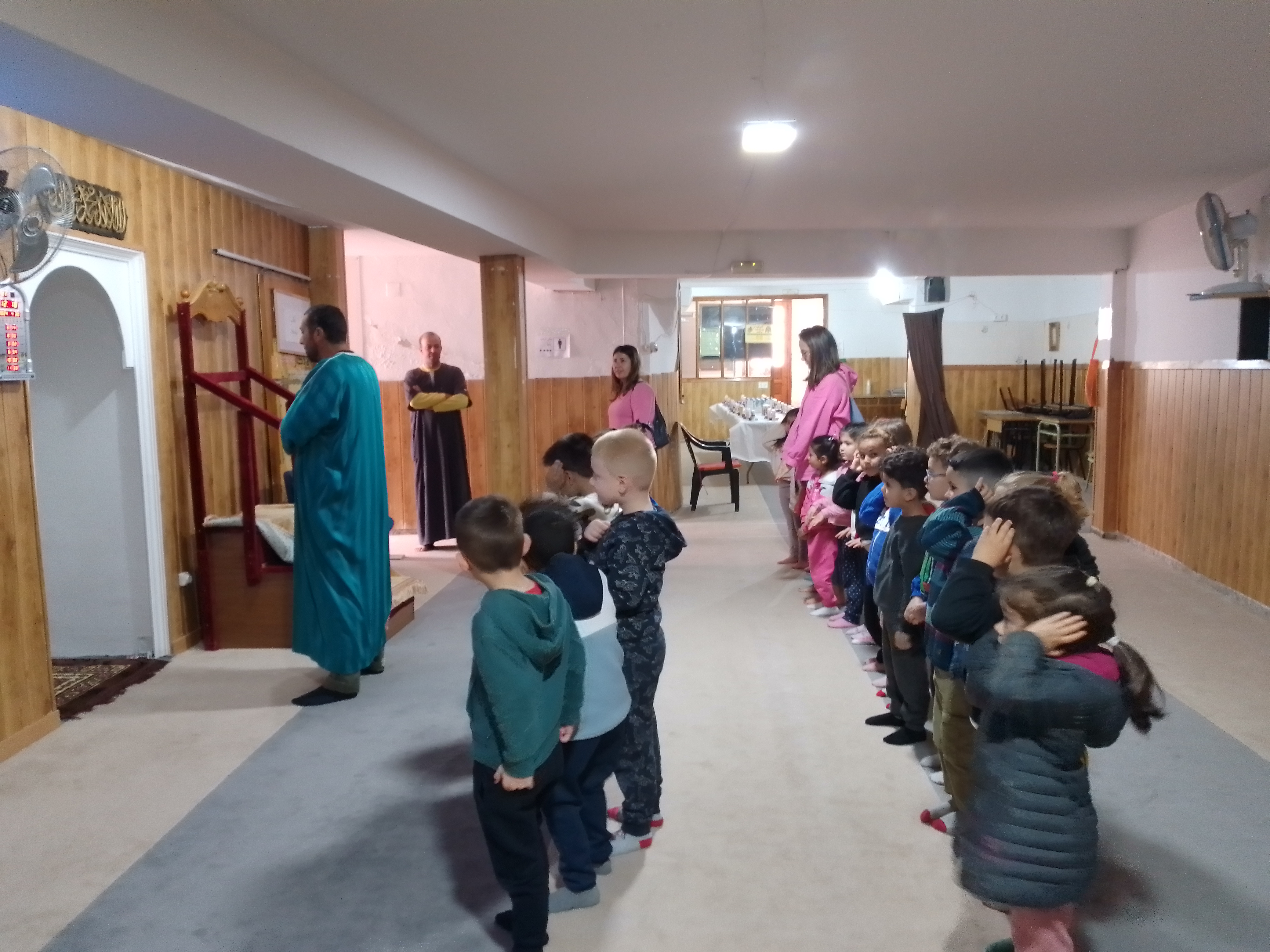 Ha sido muy curioso quitarnos los zapatos para entrar, también hemos visto su libro, el Corán, con unas letras muy raras y bonitas. Nos han enseñado cómo se hace el rezo y nosotros lo repetíamos. ara terminarnos han invitado a zumos, agua y unos dulces. Nos ha gustado mucho y les damos las gracias por todo lo que nos han enseñado.