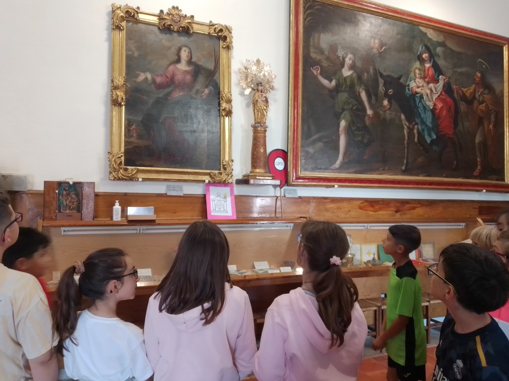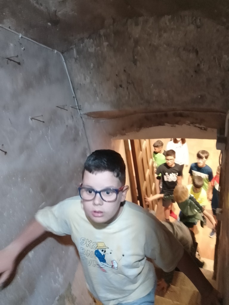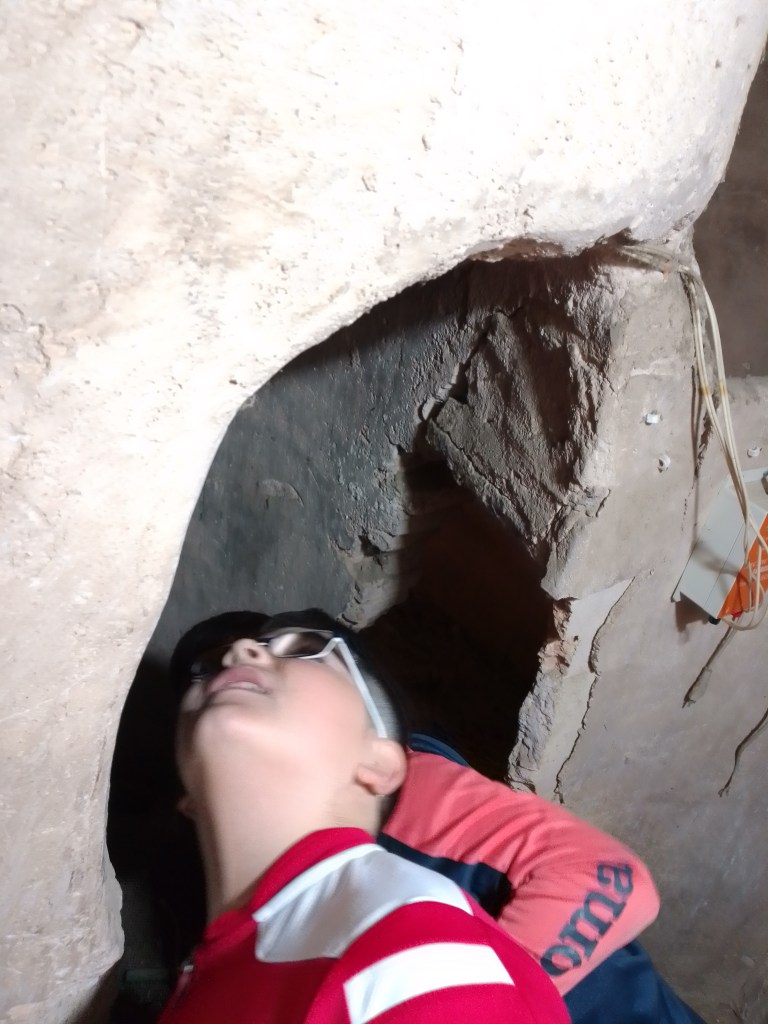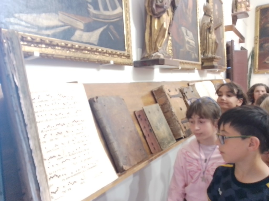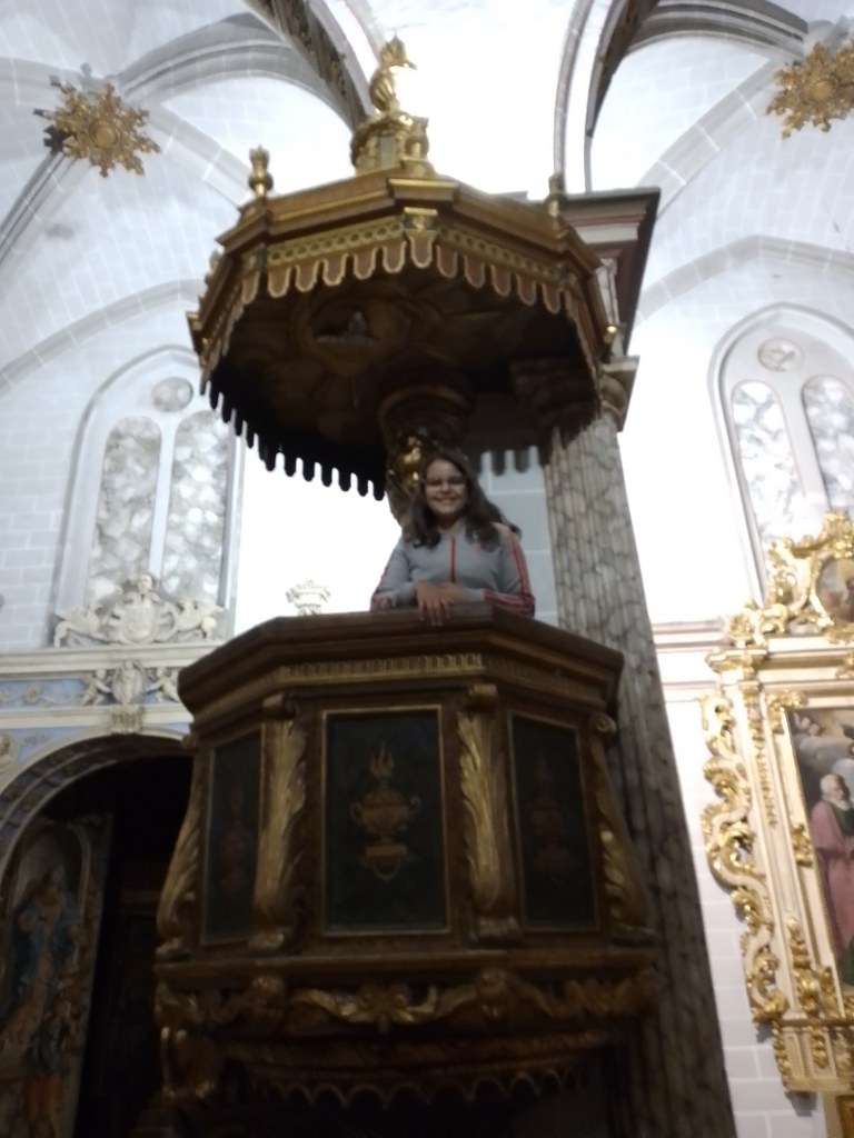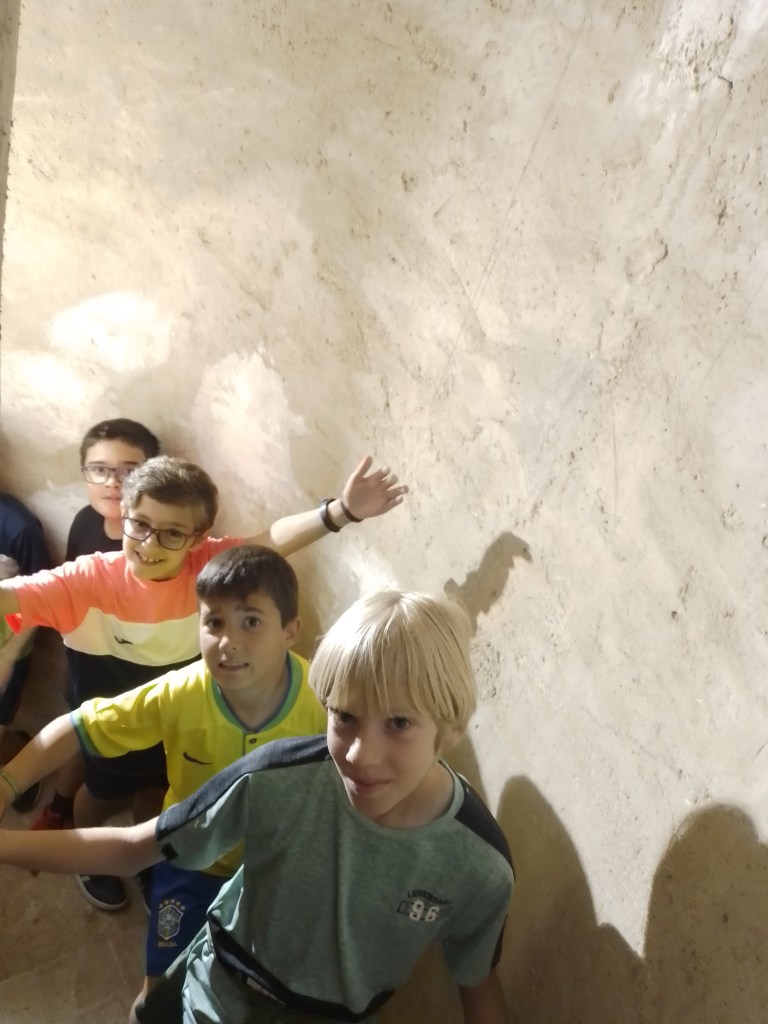 Además de subir y ver muchas curiosidades de la torre también tuvimos la oportunidad e entrar en la sacristía. Allí pudimos ver y tocar libros antiguos escritos en latín y que servían de cantorales. Observamos el cuadro dedicado a santa Bárbara y desciframos algunos de sus misterios; vimos el escudo completo de Fuentes y muchos otros objetos y vestimentas curiosas. Y ya que estamos en prefiestas nos hicimos una foto con San isidro.