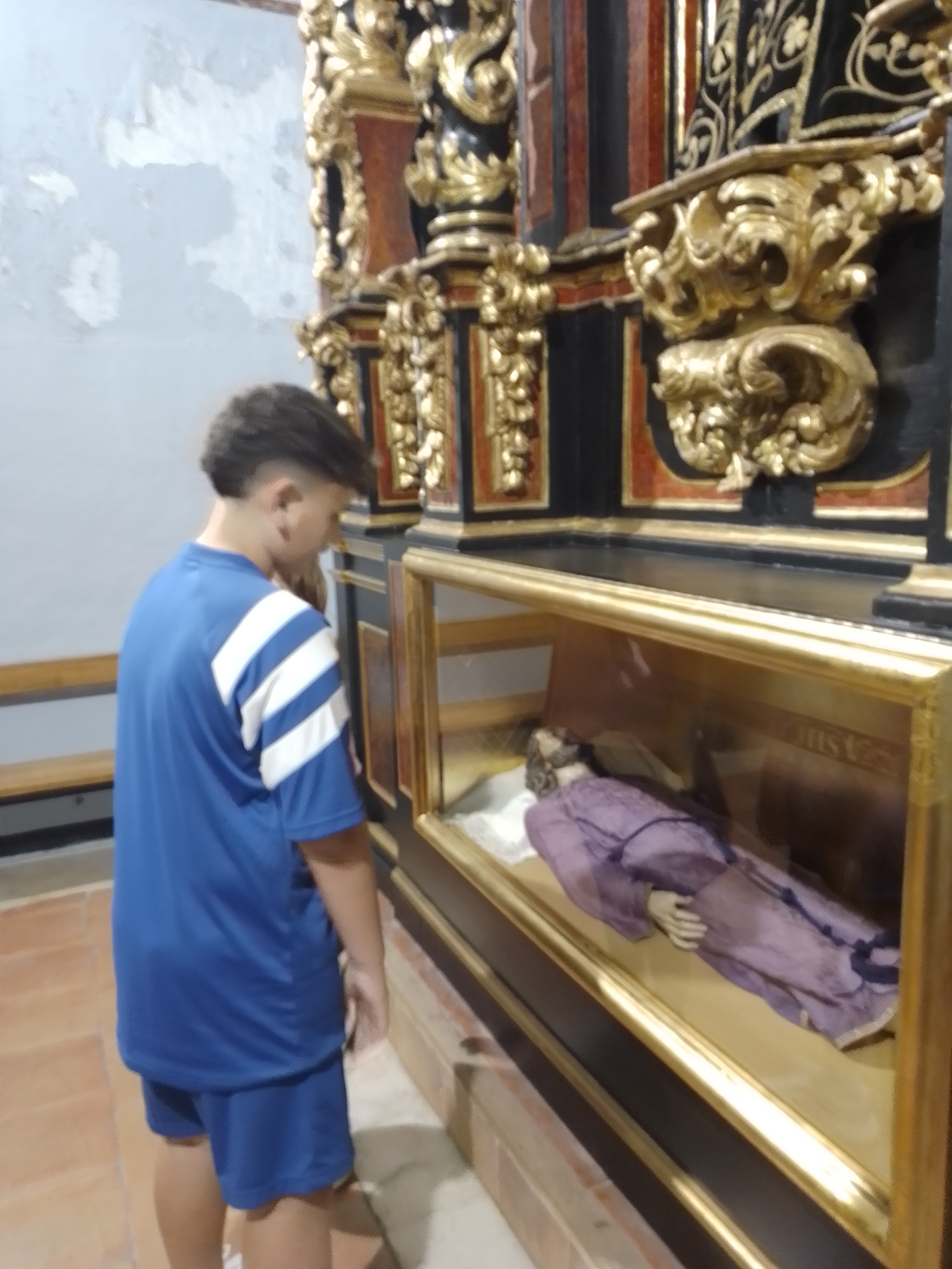 La historia de la iglesia se remonta a mediados del siglo XV cuando el conde de Fuentes, Don Juan Fernández de Heredia, decidió construir aquí su panteón familiar. En clase de reli, los chicos y chicas de 6º, estamos haciendo un trabajo de investigación sobre la el patrimonio artístico e histórico que contiene la Iglesia de San Miguel Arcángel . Para ello hemos podido observar, tocar y conocer de primera mano algunas de las curiosidades que encierra dicho templo. Importantes escultores, arquitectos , doradores,…como Quinto Pierres Vedel, Tomás Peliguet o Nicolás Lobato fueron grandes artistas de su época que vinieron ,por orden del conde de Fuentes, a trabajar en la construcción de la iglesia.